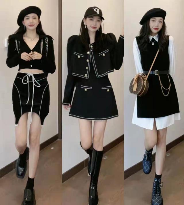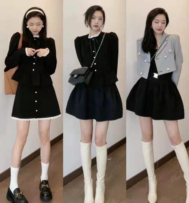 黑色的連衣裙搭配及膝靴,黑白之間碰撞出時尚的感覺更加強烈。利用小黑裙搭配格紋的西裝,呈現出淑女的氣質。