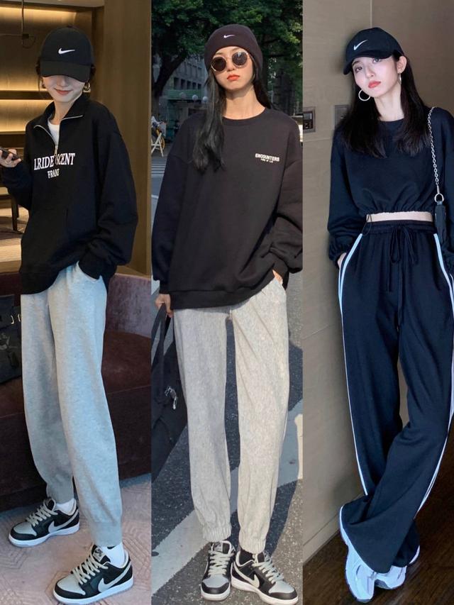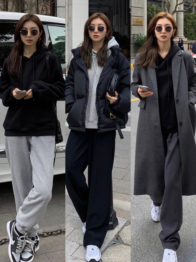 米黃色的衛衣看起來就比較乾淨一些,顯得整個人十分優雅。灰色運動褲與黑色簡單字母衛衣的搭配,更是讓整個人看起來特別精神。
