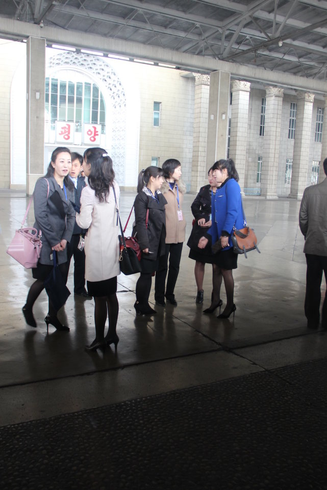 到達平壤之後,兩名美女導遊已經在車站等候了。上了旅遊大型巴士後,導遊跟我們開玩笑說,朝鮮女生個個都是美女,單身的小夥子可以到我這裡報名,給你們介紹一個朝鮮老婆。