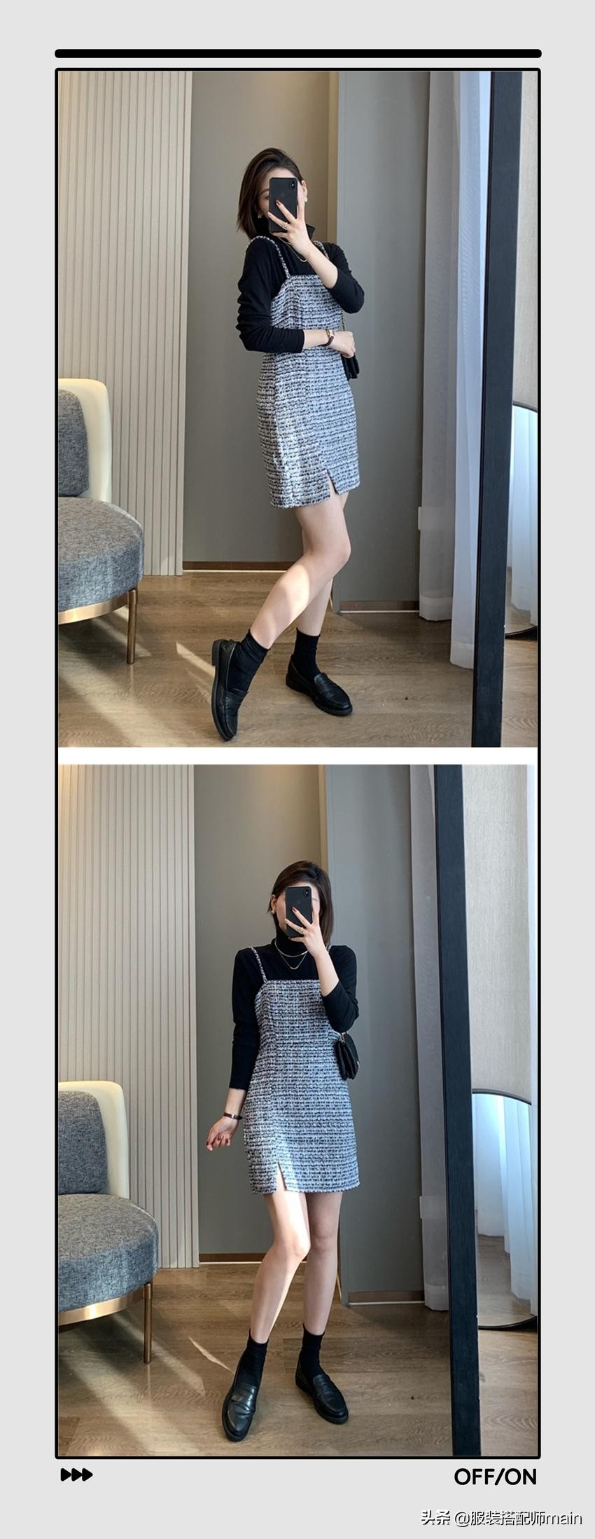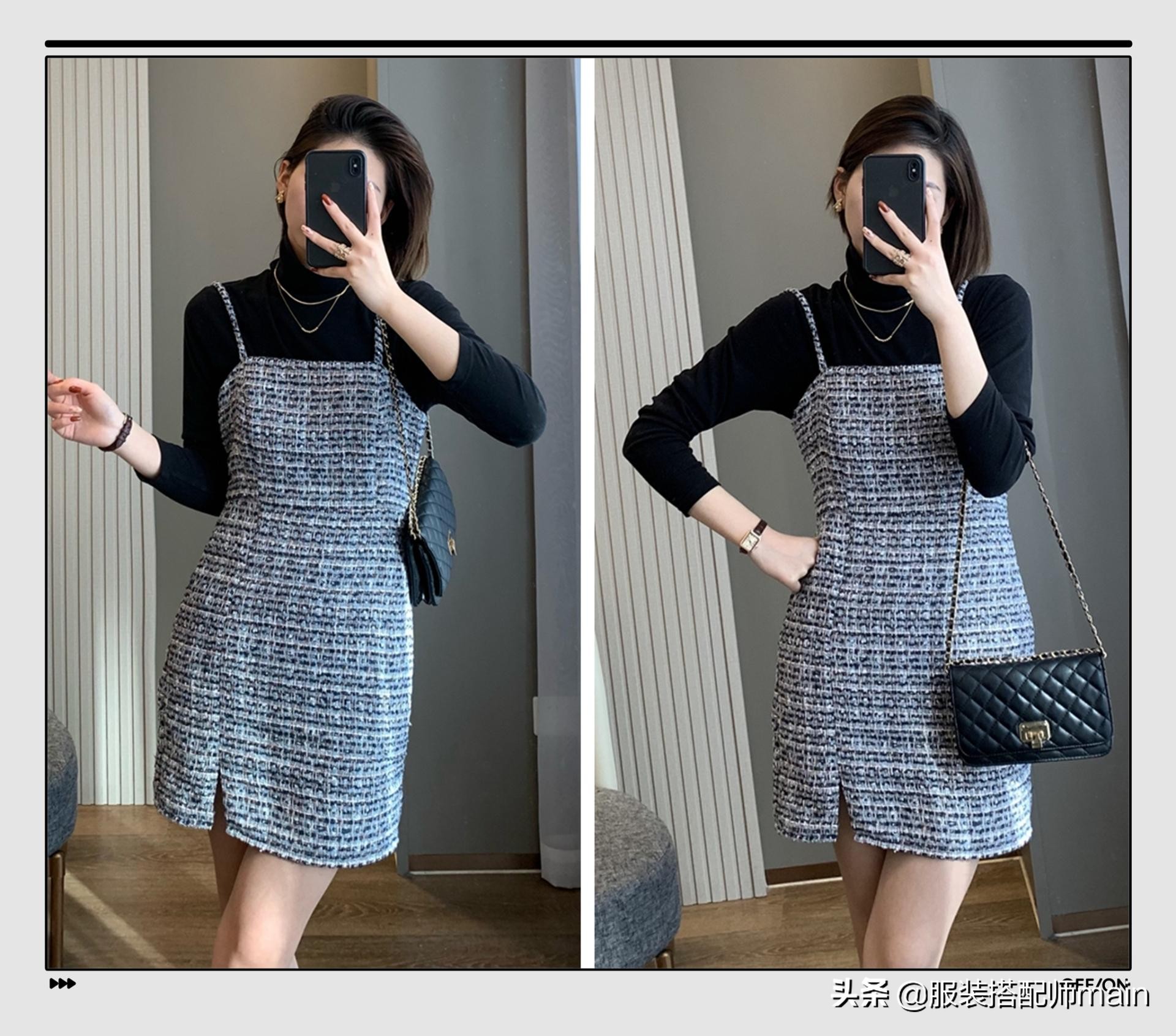 可是看到街上那麼多人穿吊帶裙加外套後,我就在吊帶裙裡面加件高領衫,這種穿法既保暖還能將吊帶裙完美展示出來。