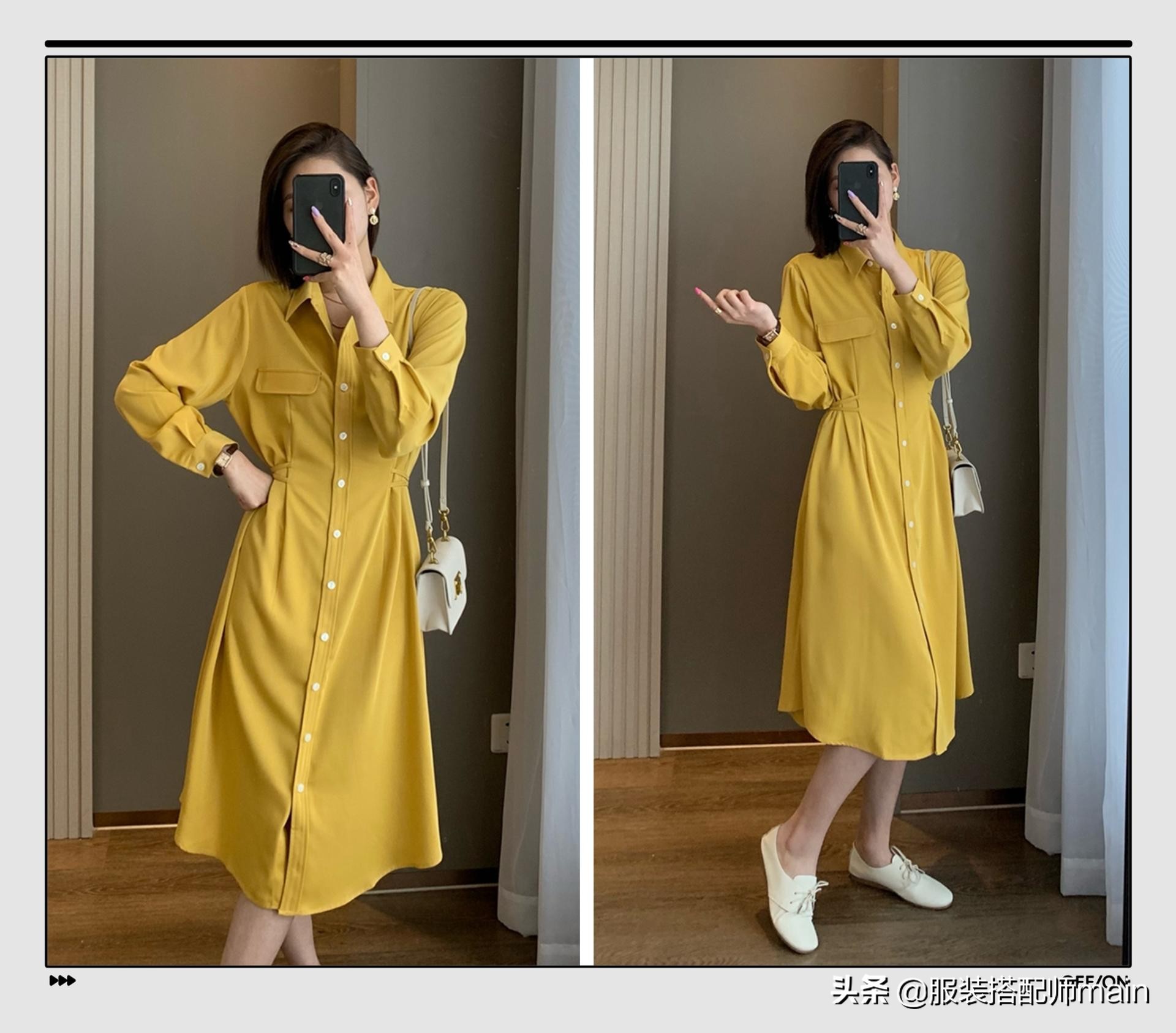 襯衫裙給人們一種很文雅的印象,我感覺非常適合秋季穿。尤其是黃色款,背上一隻小包去遠足,太有秋季氣氛了。