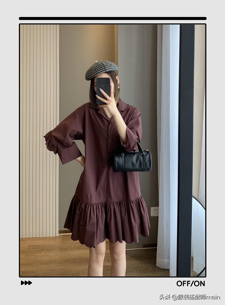 這條葡萄酒紅的襯衫裙則是相反風格的,有種蓬蓬裙的感覺,穿上去很少女,元氣值也UP了。