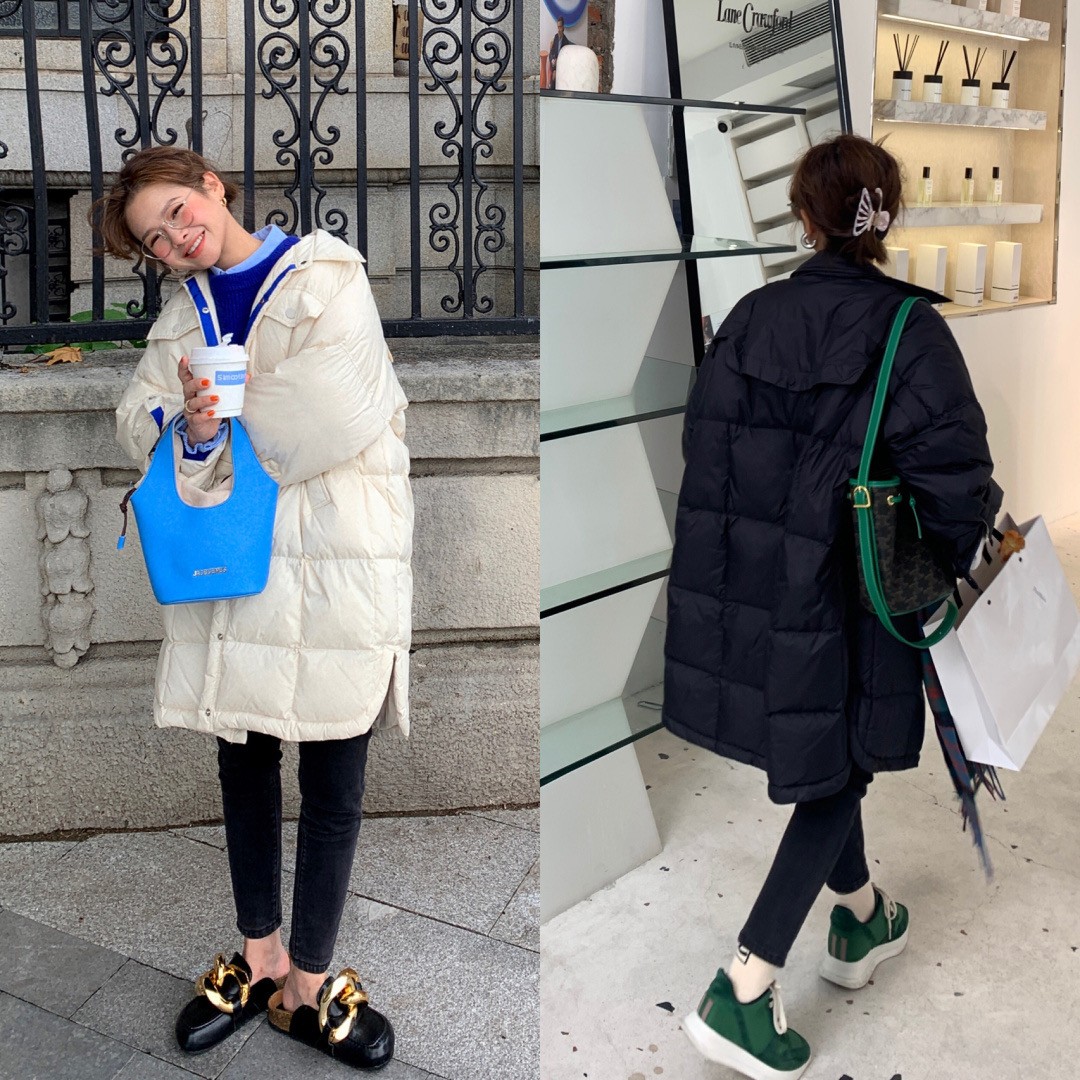 配色方向以亮色為中心風格,例如搭配白色的羽絨服,又搭配了一款藍色包包,亮色系的藍色包包,會成為搭配的亮點,從而提升自己的衣品,這種搭配方式比較實用,要比深色系的搭配看起來更加討喜。不需要擔心穿了會顯身材臃腫,而是會讓自己的搭配很有品位。