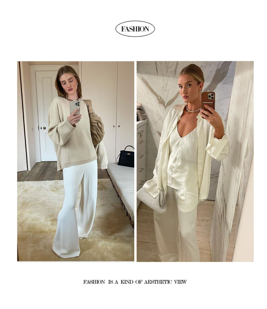 大嫂Rosie的對鏡自拍中,經常看到奶油色單品的身影。