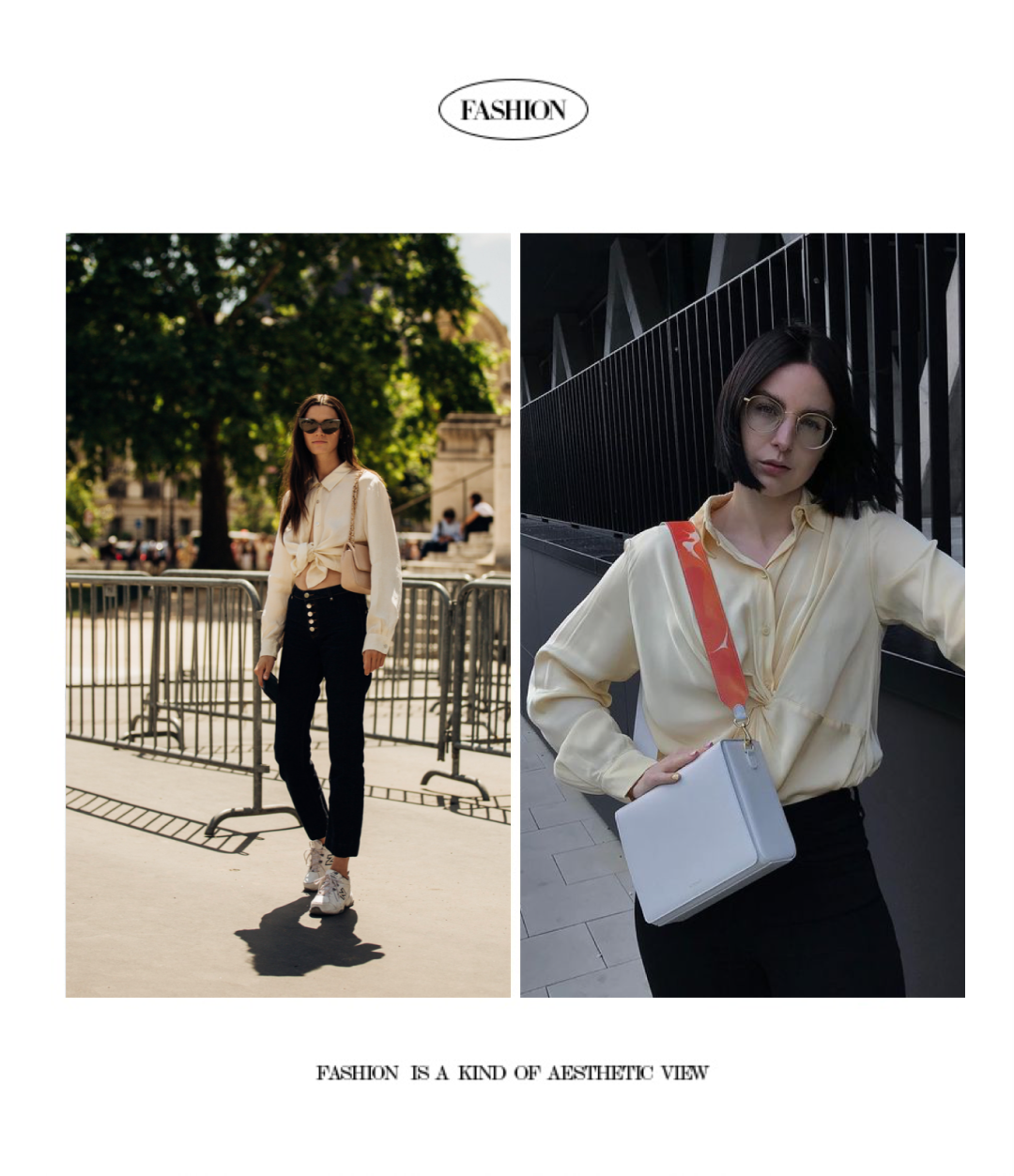 奶油色襯衫可以與萬能的黑色單品來做搭配,在鞋子、手袋、太陽鏡這些小物件上增加一些小巧思,還能增加時髦感。