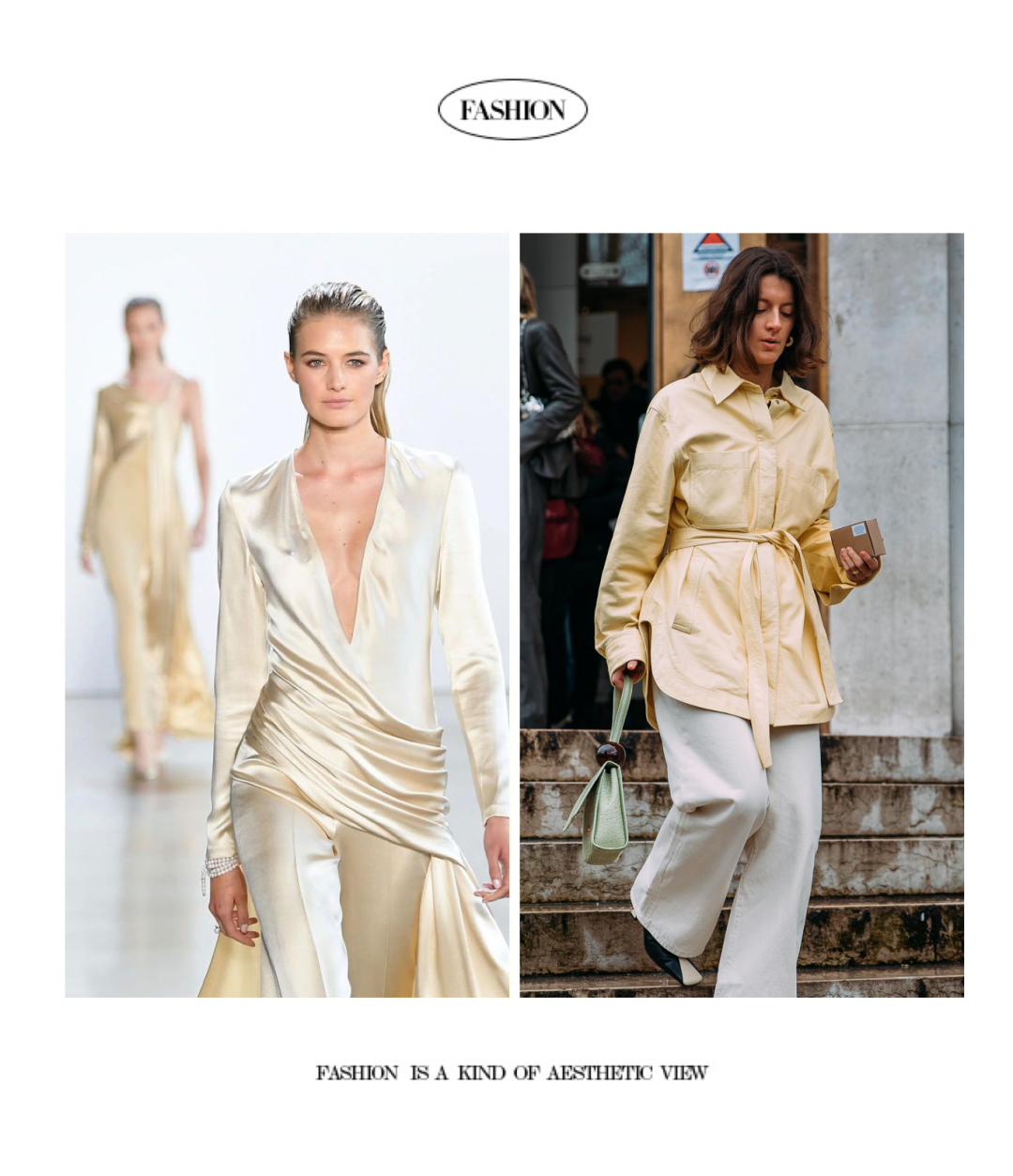 把奶油色造型集合起來,就好像在看一場「奶油盛宴」,還沒注意到剪裁,就先被它所營造的高級感俘獲。