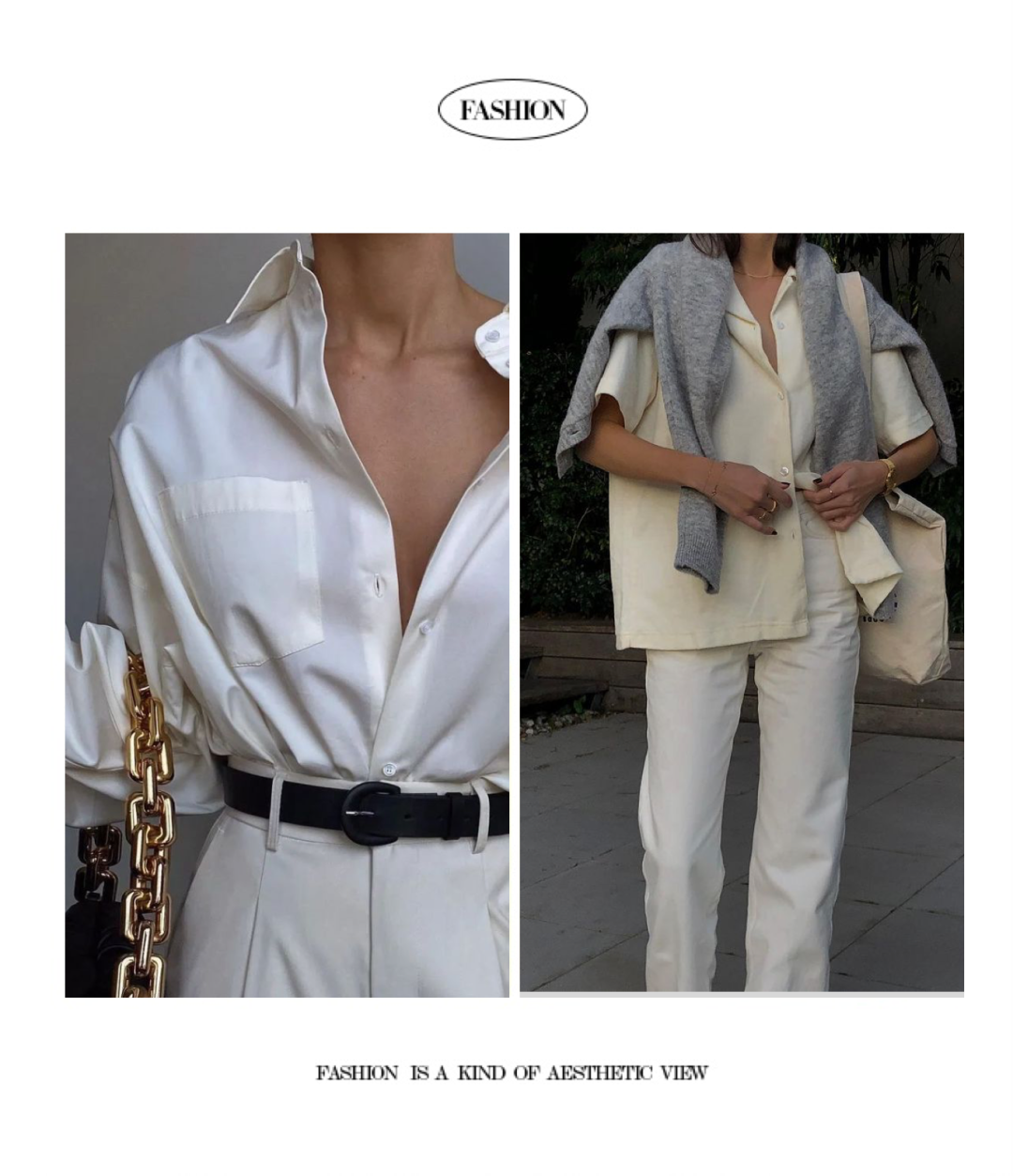 白襯衫略顯寡淡,奶油色襯衫在白色的基礎上多了一絲黃色的溫柔,在略帶涼意的秋冬季節愈顯溫暖。