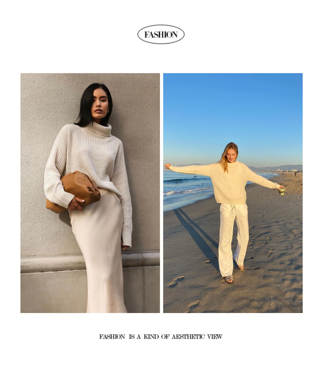 奶油色給人一種溫暖的感覺,這種類型的顏色與針織相遇就更相得益彰了,因此針織單品是奶油色的重點發展對象。