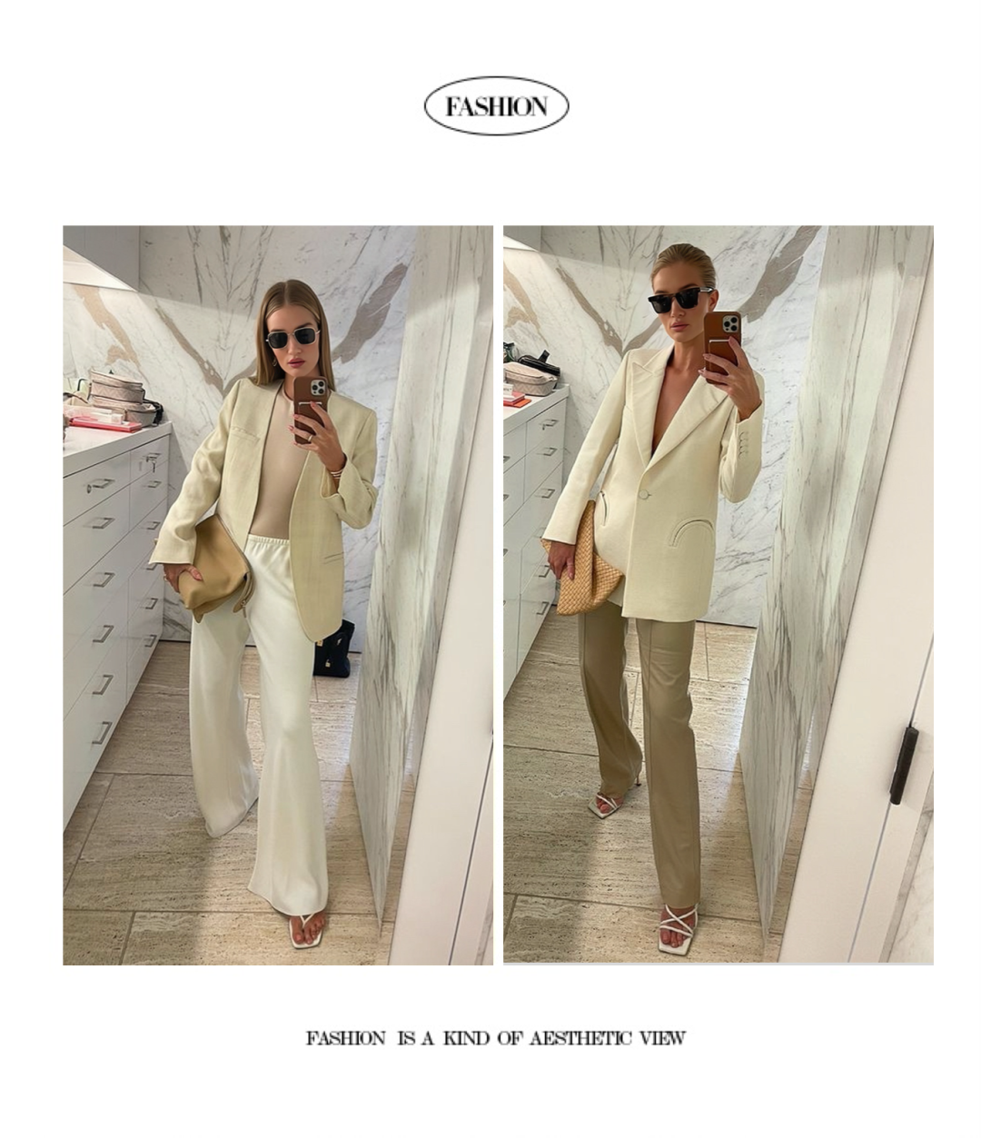 如果只能選擇一件奶油色單品,編輯一定會把票投給奶油色西裝,屯了高級黑、復古格紋,今年淡雅的奶油色勢頭很足。