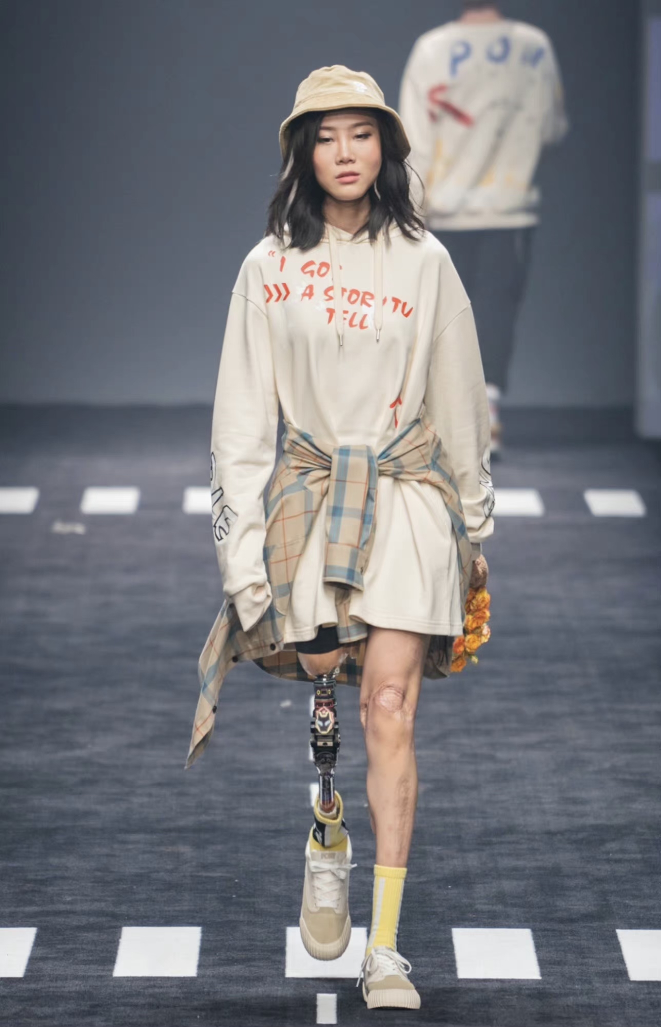 最近,在上海時裝周上,一位殘肢模特引起了大家的注意。她靠著一條機械小鋼腿自信的完成了整場走秀。她就是汶川大地震的幸存者女孩——牛鈺。