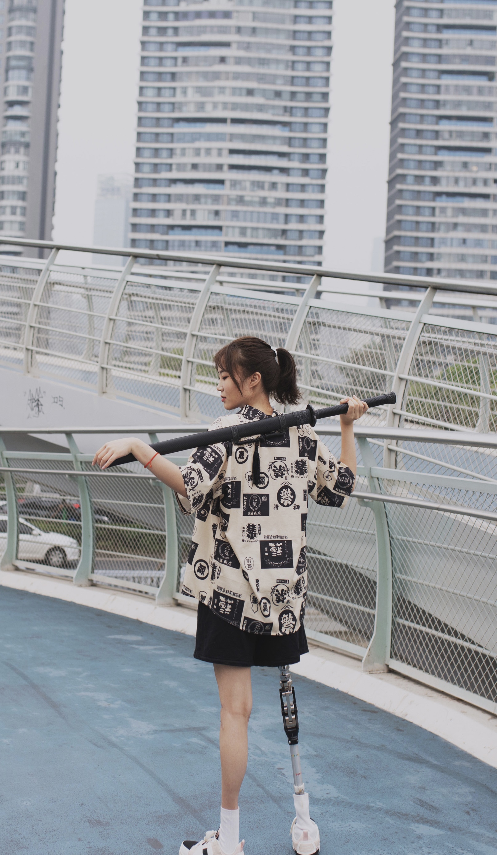 牛鈺不怕別人對她的異樣眼光,她喜歡在社交平臺上分享自己的視訊和照片。甚至將閃閃發光的熒光棒綁在自己的義肢上,在夜晚走在街上回頭率百分百。牛鈺用自己對於時尚的理解,將義肢與不同的服裝進行搭配。