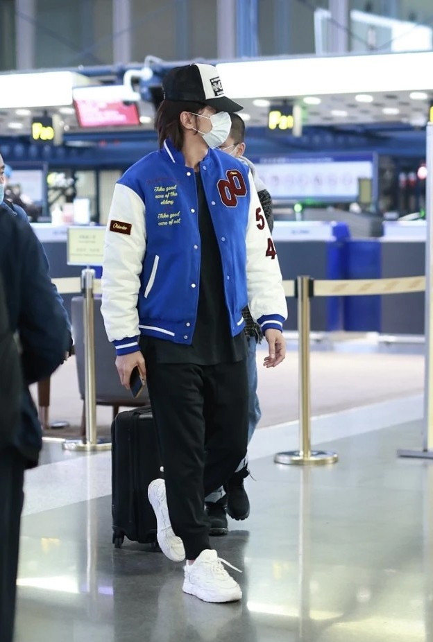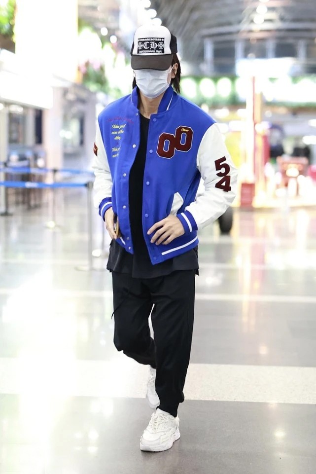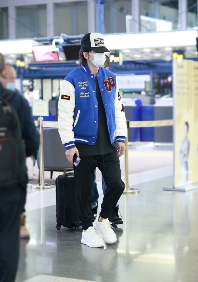 言承旭的穿搭方式雖然看起來頗為隨意,常規版型的棒球夾克與大碼內搭相結合,呈現出內短外長的視覺效果,但也不得不說這樣的搭配方式確實很時尚,也讓減齡氣息達到了高峰。