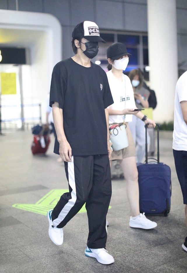 言承旭並未選擇這兩種款式,而是配合了一件簡單低調的純黑色普通衛衣打造出了大方得體的效果,反而襯托出了身材的挺拔與高挑,也讓氣質看起來更加出眾。雖然搭配的運動褲稱不上獨特,但實用度絕對稱得上優越。