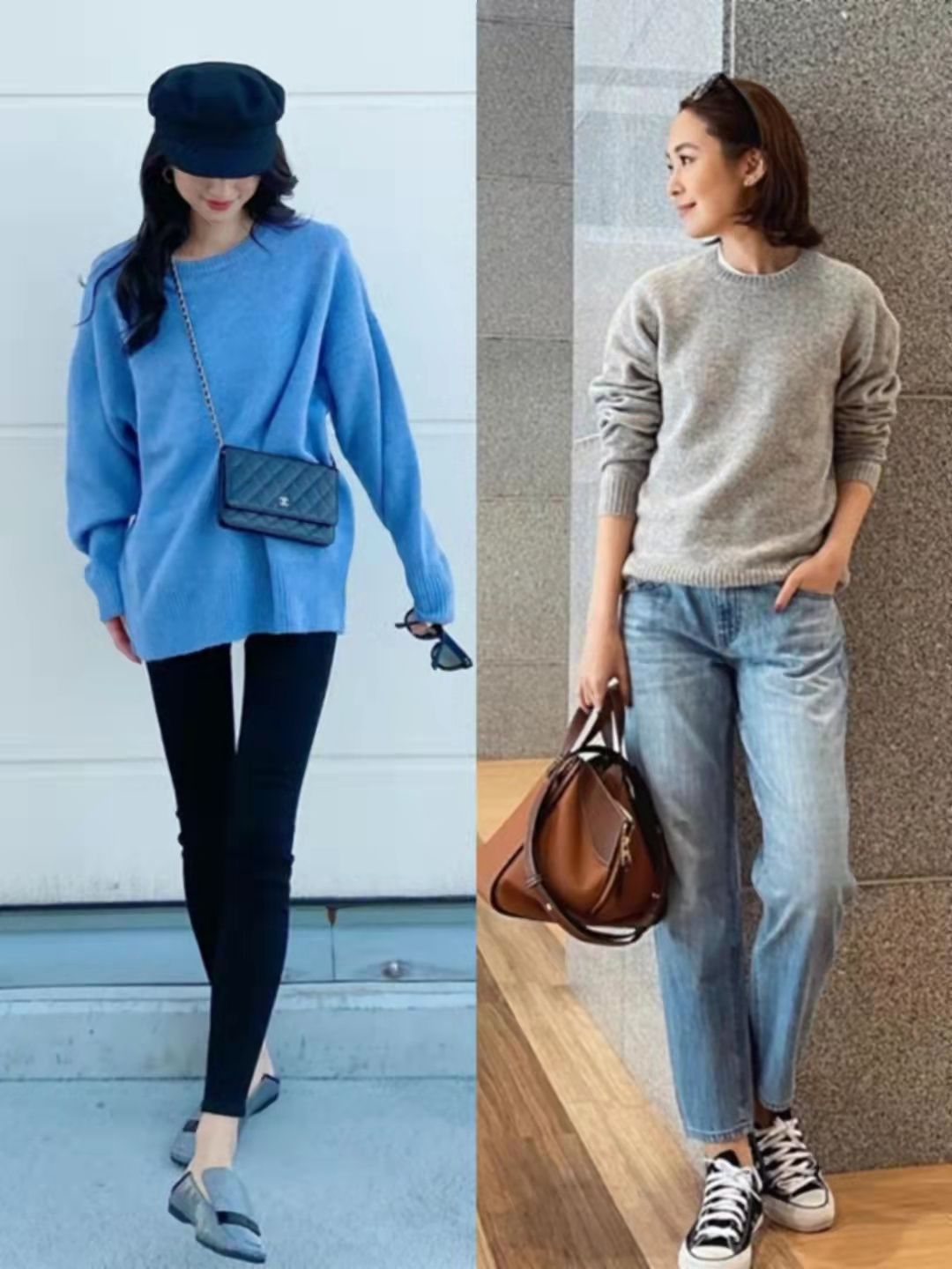 秋季是穿毛衣的好時候,挑選一條寬鬆款或者松緊適當的純色系毛衣,既舒適又溫婉。