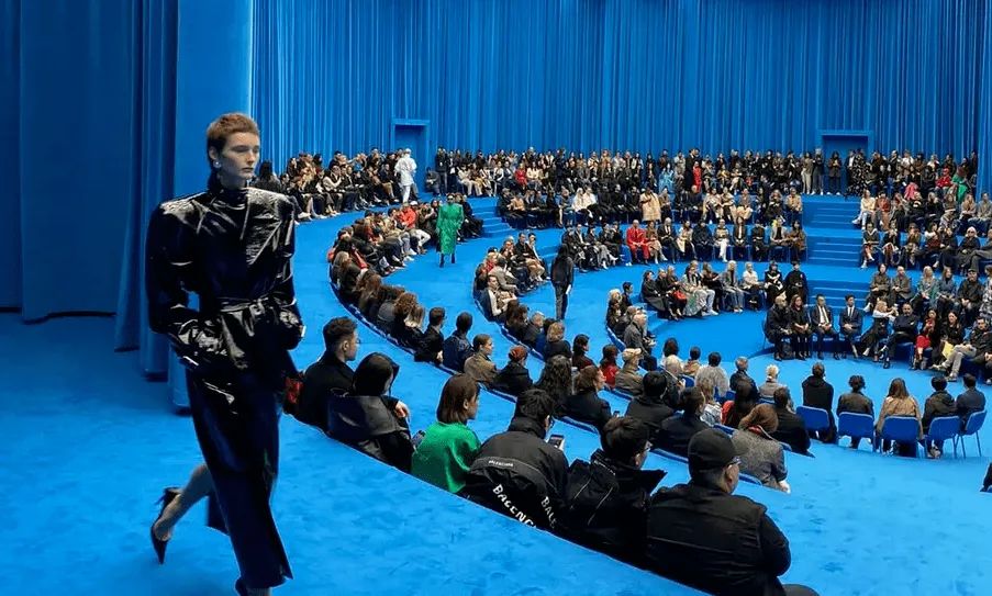 2020春夏系列的秀場被高飽和的藍色絨布包裹,就沒見過這麼冷淡又充滿壓迫力的秀。