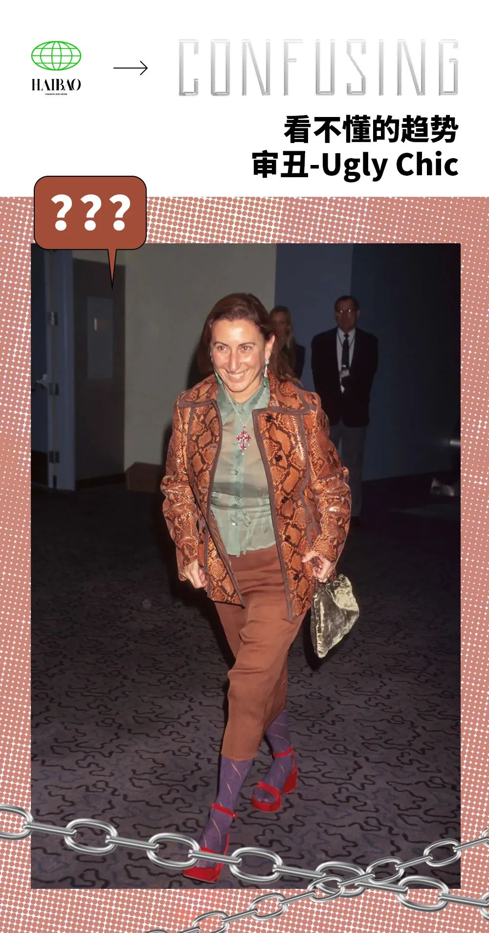 90年代,極簡主義也曾盛行一時,作為「造浪者」的設計師們要麼乖乖臣服,要麼就反骨尋求突破,Miuccia Prada於是提出了「Ugly Chic」的概念。