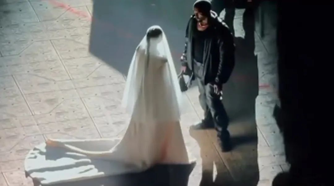 侃爺新專輯發布,金姐穿著婚紗亮相,這…是辦了個「離婚典禮」嗎?面罩下空氣新鮮麼,能看清路麼二位?