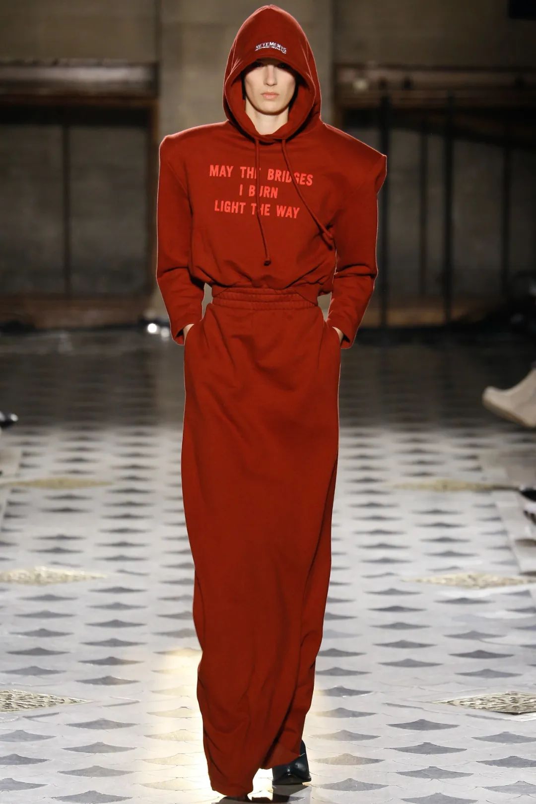 其實要想讀懂這麼「莫名其妙」的趨勢,要從品牌近幾季的創意靈感下手。末世主題、政治反諷等都是Demna的拿手戲,再結合前衛的美學語言,就是要讓你看完脊背發涼。