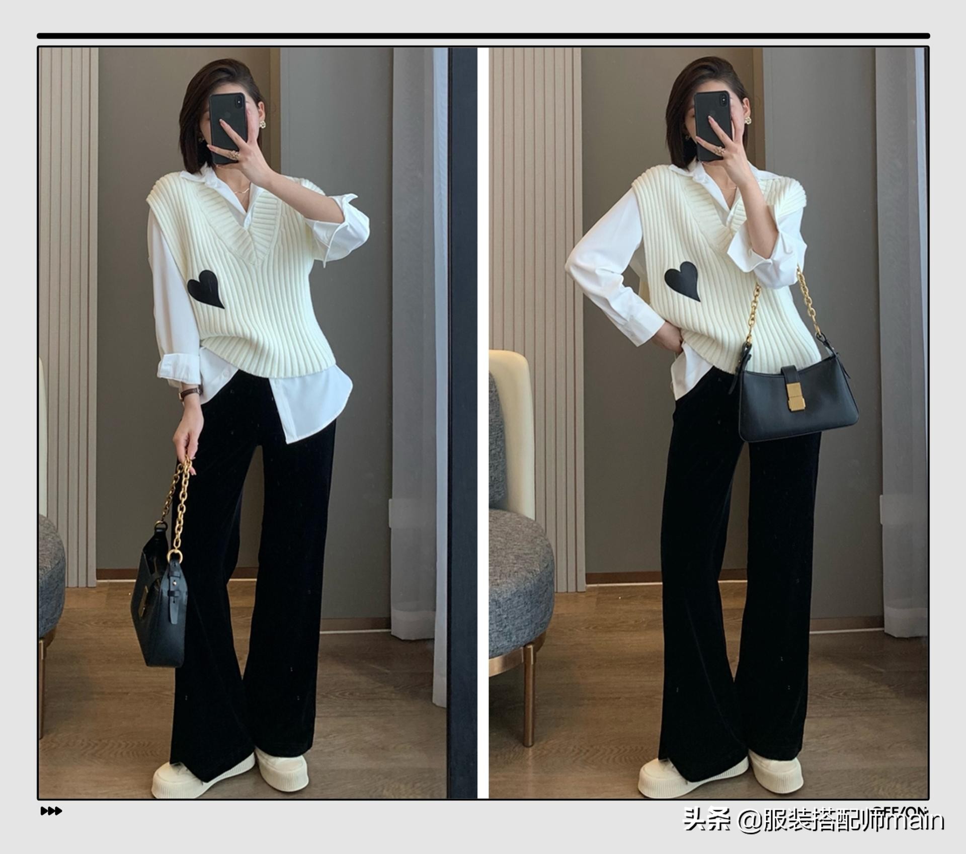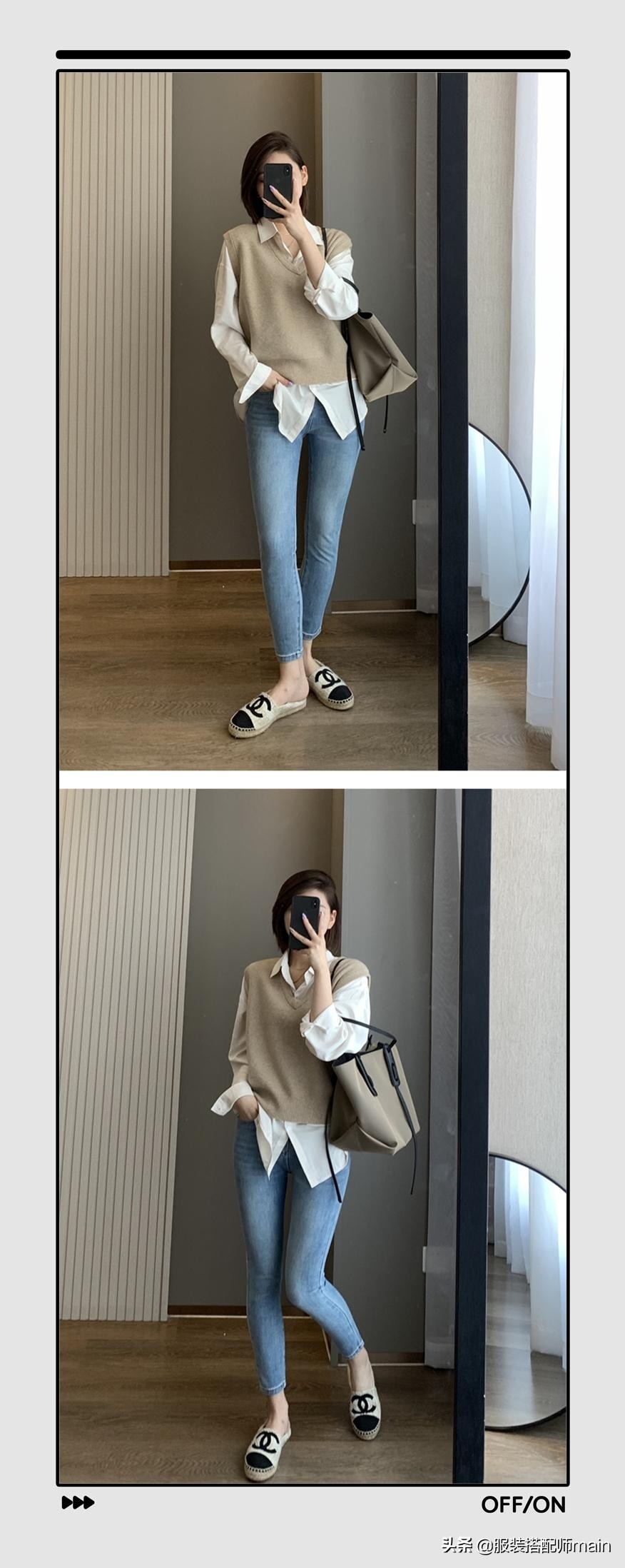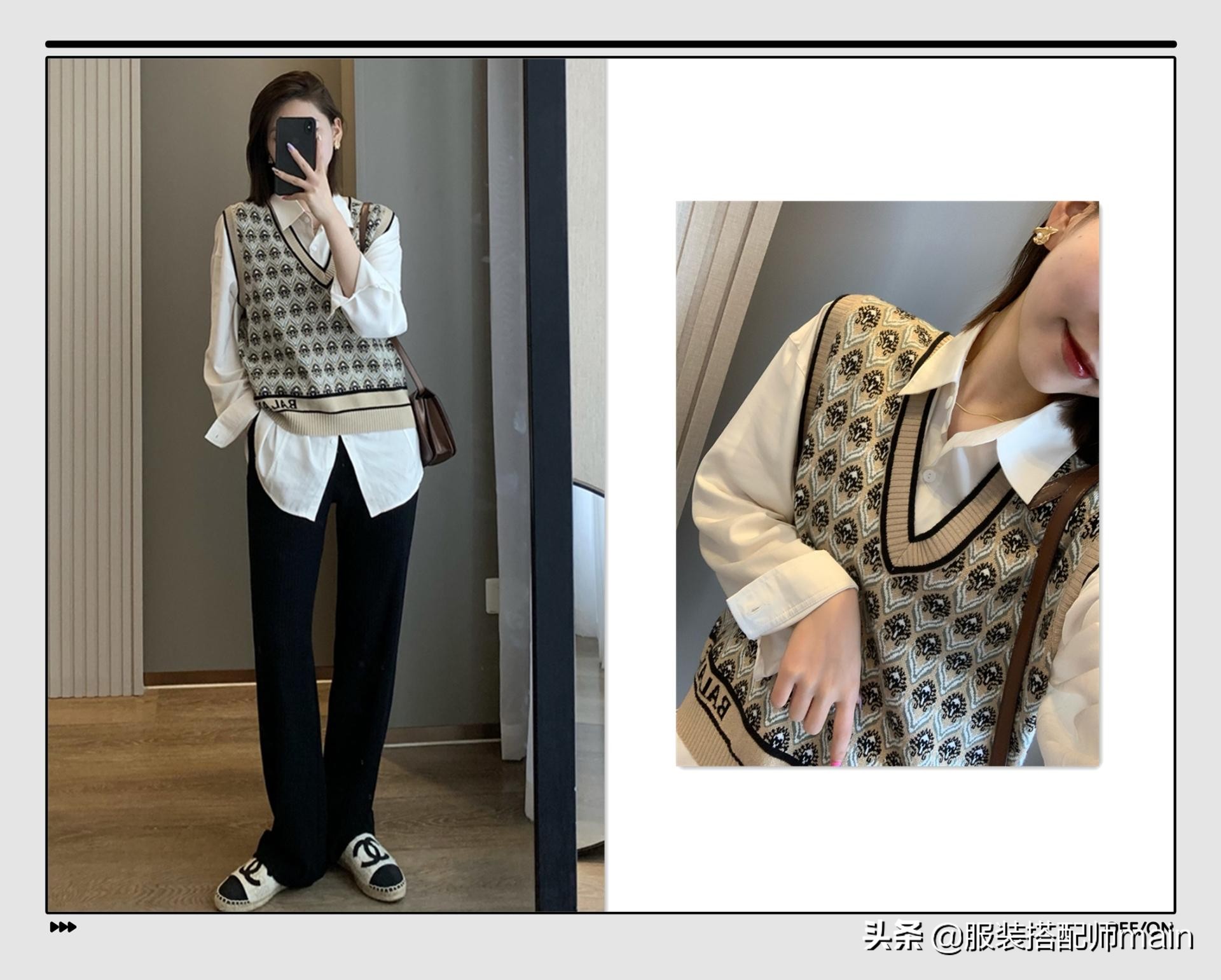 針織背心+襯衫的穿法,很容易就穿出文藝氣質,或者是減齡的學院風。而且舒適又保暖。