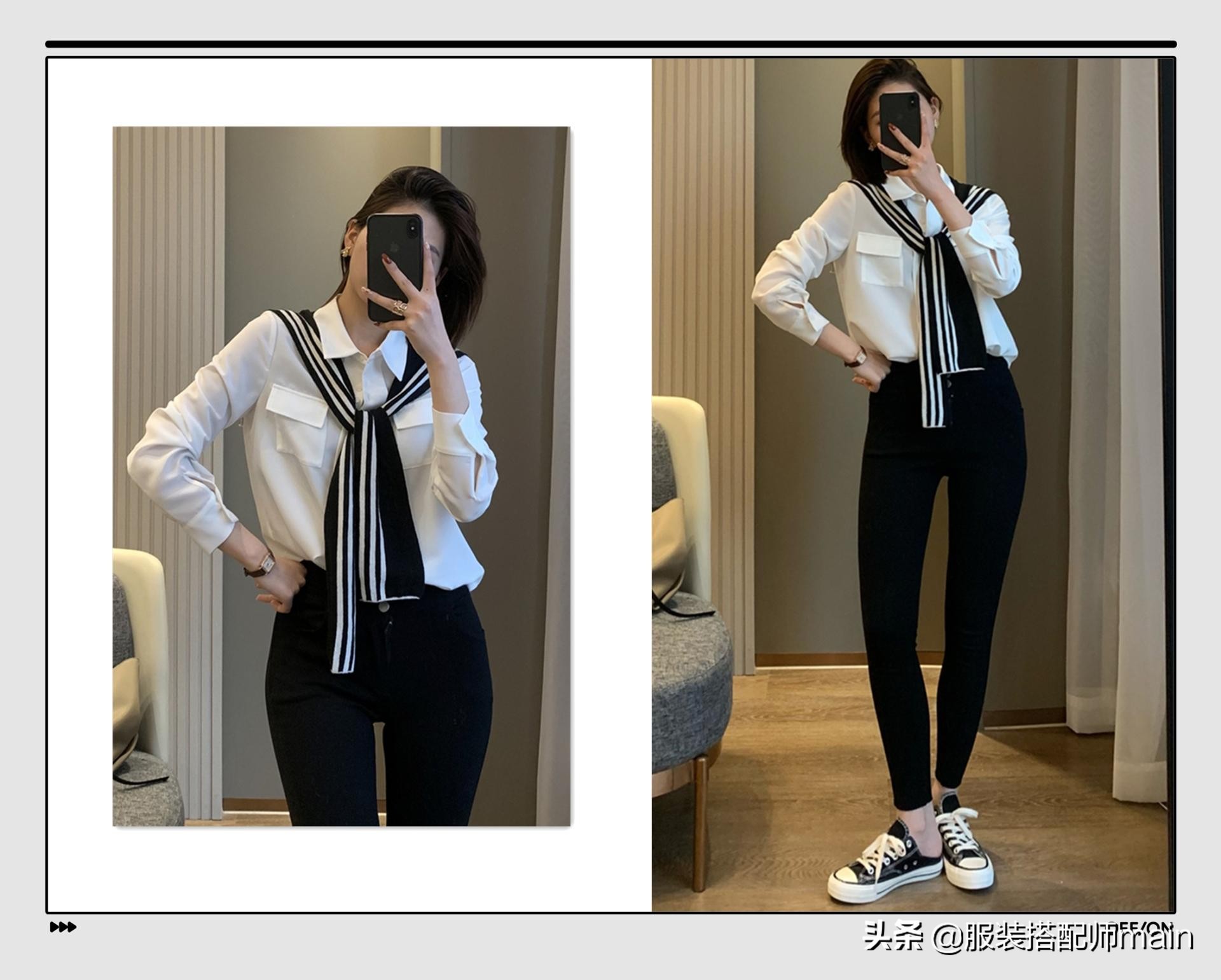 白襯衫做內搭肯定沒有問題,就是有點太普通了,如果給這件白襯衫配上近兩年流行的披肩,那就會變得很洋氣。