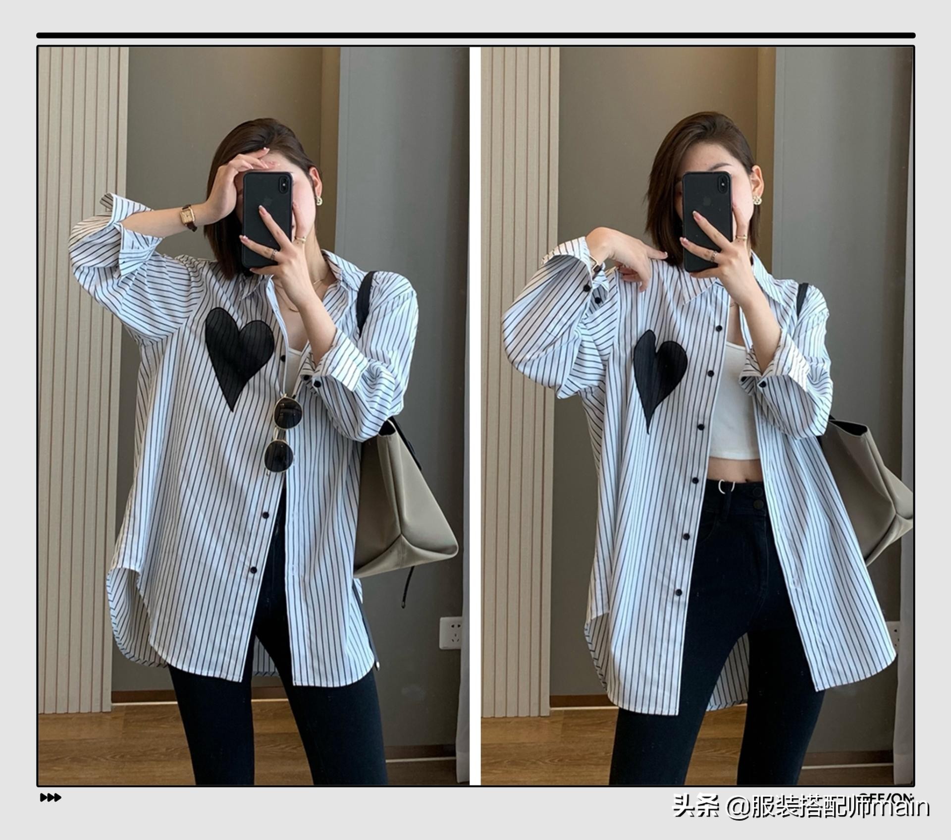 要說對身材友好,那必須是oversize廓形襯衫,上面還有條紋的點綴,既能顯瘦又有很強的辨識度。