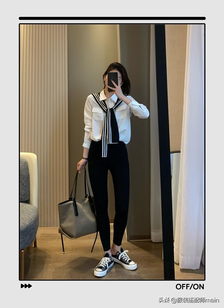 下裝選一條小黑褲,塞起衣擺,還能修飾你的身材比例。無論你搭什麼外套,只要敞開,都不會顯矮或者顯胖。