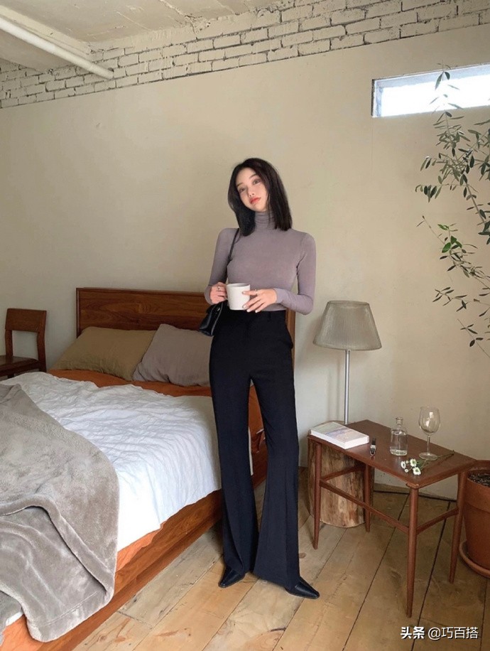 既然說到高領打底衫,就不得不說一下推薦大家選擇它的具體原因了!首先是因為它修飾身材的能力非常強,即使你平常走路不注重身形,穿它上身也能秒變板正筆挺。