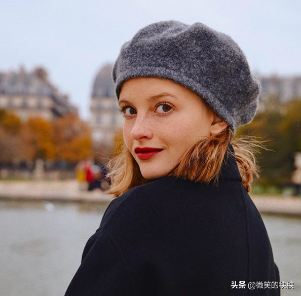 除了版型選擇,Christie Tyler和法國女生們一樣,在基礎款+基礎色的穿搭大框架上,對飾品的搭配格外用心,帽子、項鏈、耳飾,都是她用來營造時尚感和個性化的元素。服裝簡單,但金色飾品加上去之後,復古法風的味道就濃烈了。
