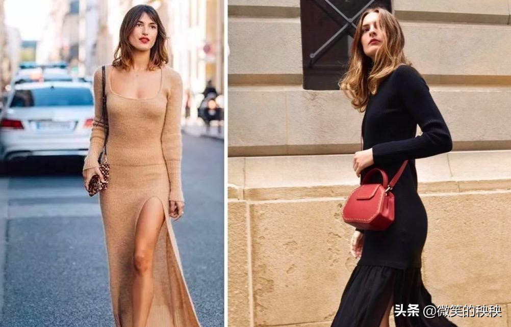 天冷了,就選擇能勾勒身材曲線的針織長裙,再加上一個腿部開叉,就能擁有法式博主同款性感。
