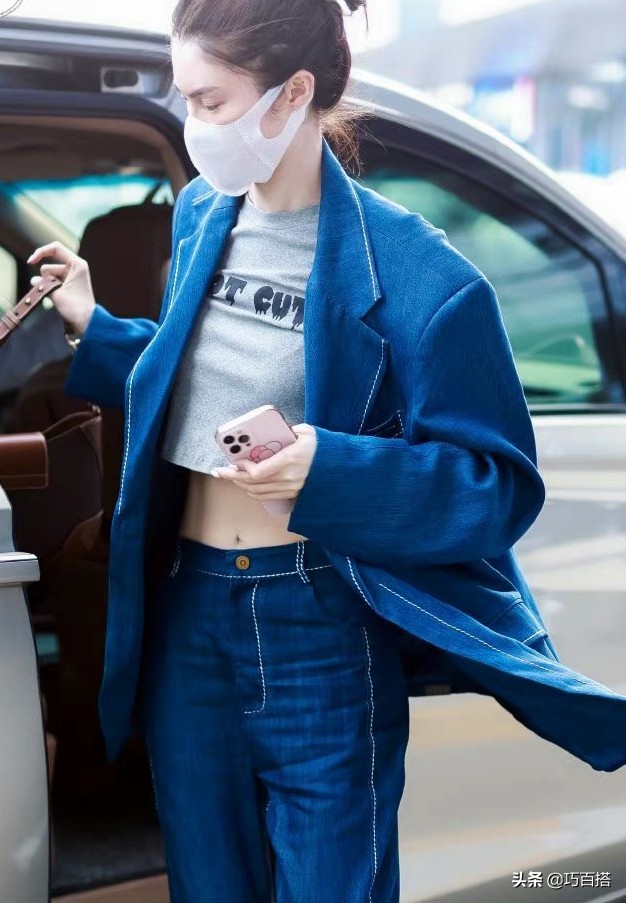 雖然何穗的穿搭很美很氣質,但是也不要盲目照搬。例如這樣的露肚腩設計,就不太適合現在的溫度了,不僅是著涼的節奏,還會降低搭配的質感。
