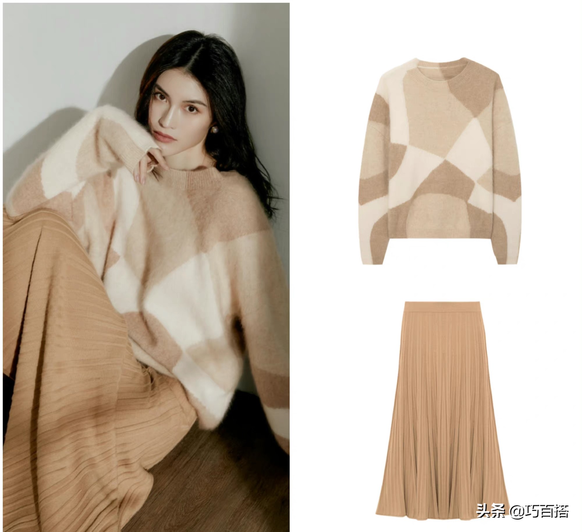 Tips1:駝色毛衣+百褶長裙,優雅又大氣的look