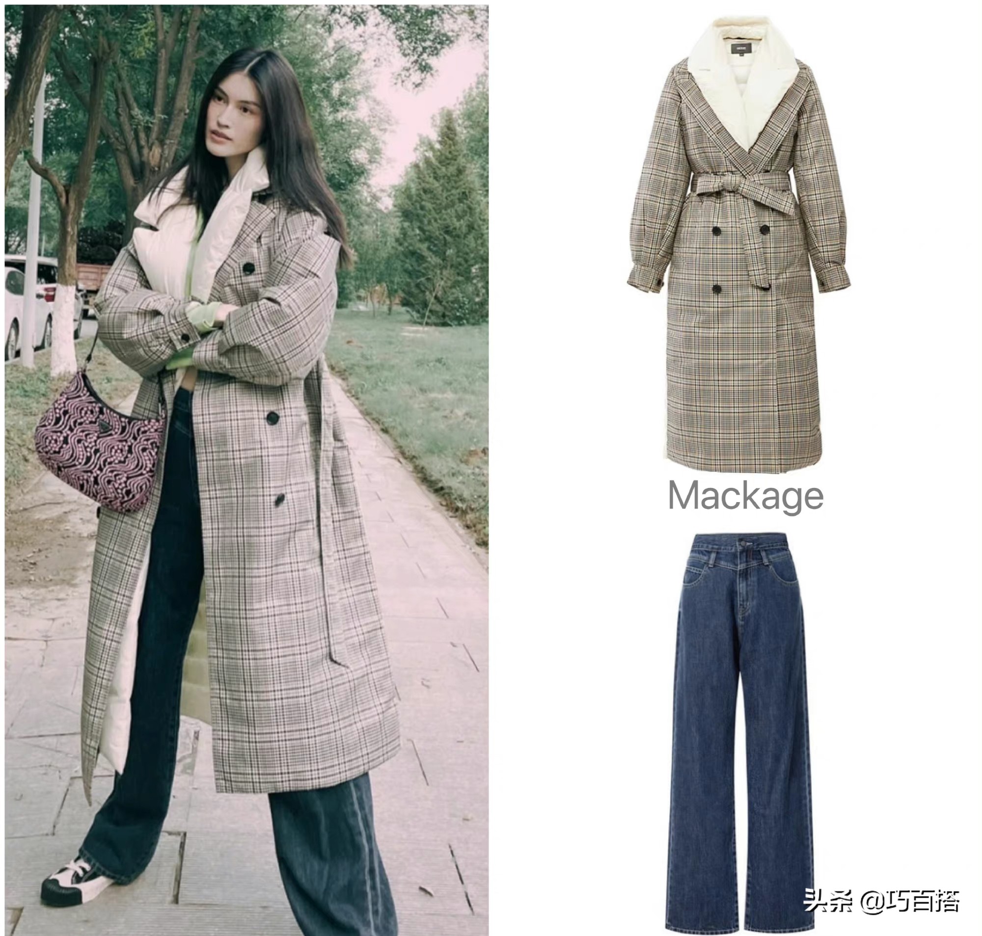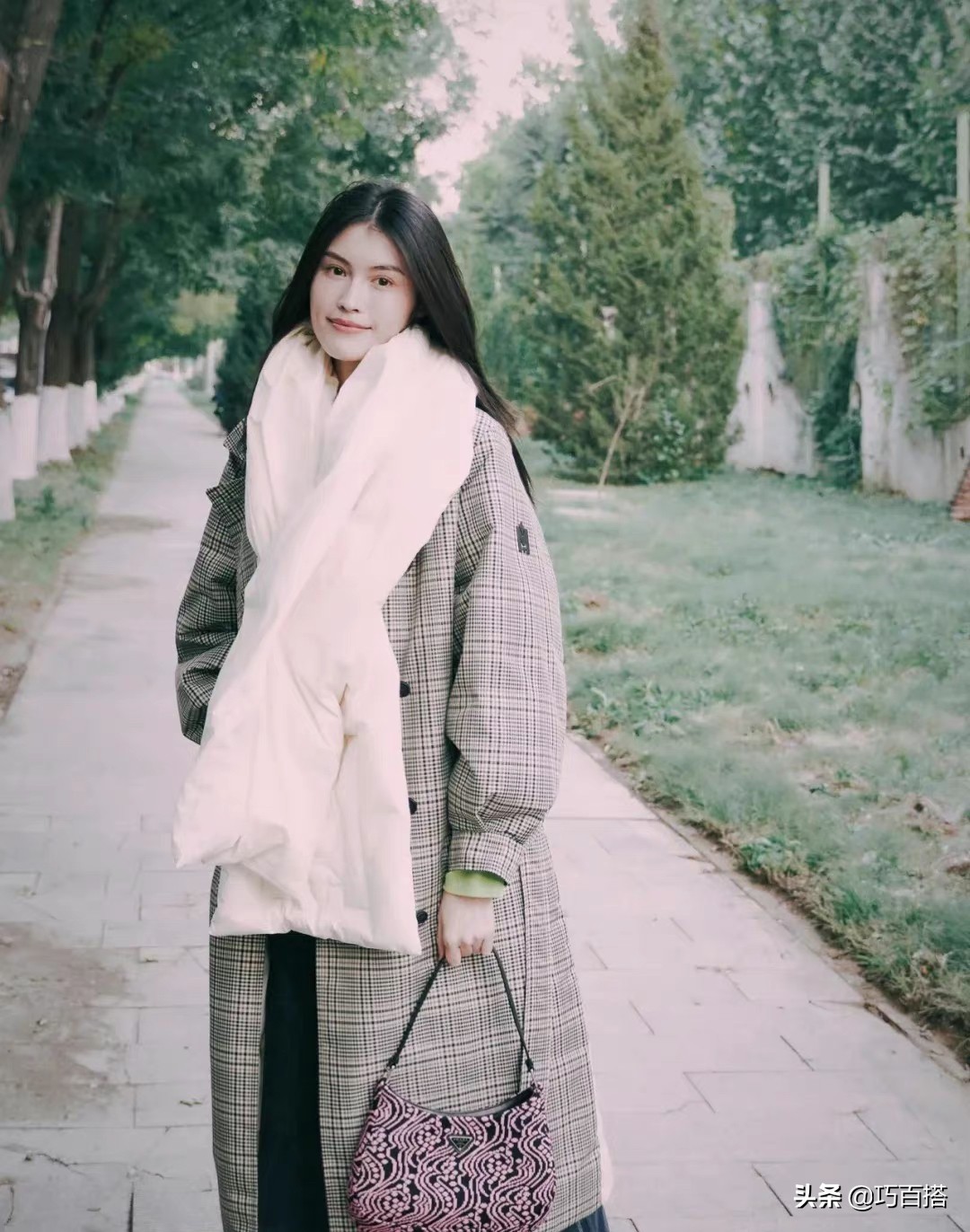 羽絨服和大衣都是秋冬季節必備的單品,而且羽絨服的受眾比例就明顯的更多一些,但是口碑卻不佳,因為羽絨服穿著上身非常容易顯胖。所以,何穗這裡使用了羽絨服搭配昵大衣的疊穿方式。