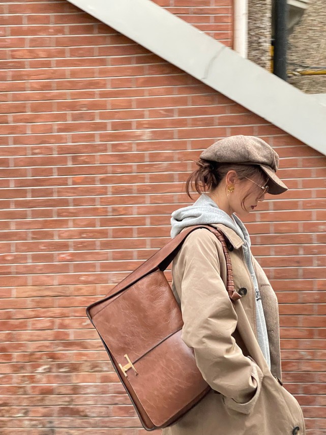復古棕色,多以風衣、大衣等一系列的純色系單品存在,用復古的棕調色來增強復古氣韻,展現輕奢與高級的造型感。復古棕色調與毛呢面料的柔軟質感搭配,更能提升溫度,同時在長款類服飾的搭配作用下,便更能展現出復古與優雅的形象魅力。