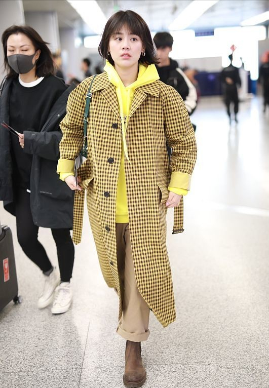 其中,選擇檸檬黃色的格紋款大衣來搭配,將經典元素與時尚元素進行完美的結合,凸顯了服裝款式的品味,提升了格調,展現了造型上的精彩,魅力無限。