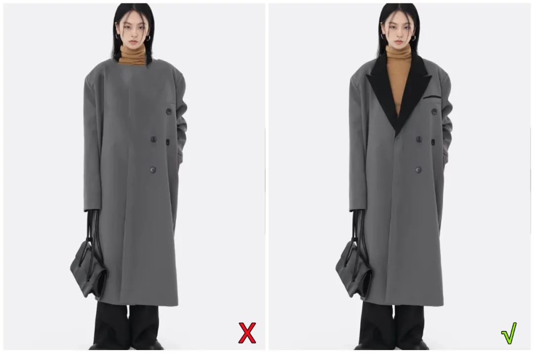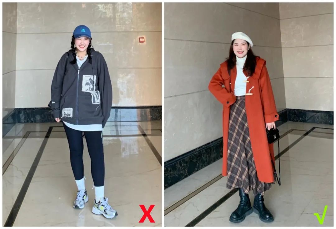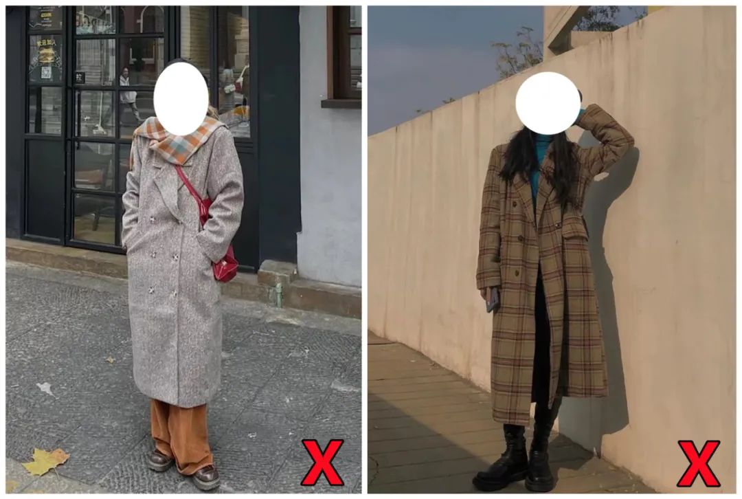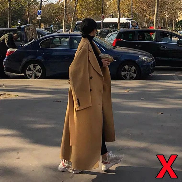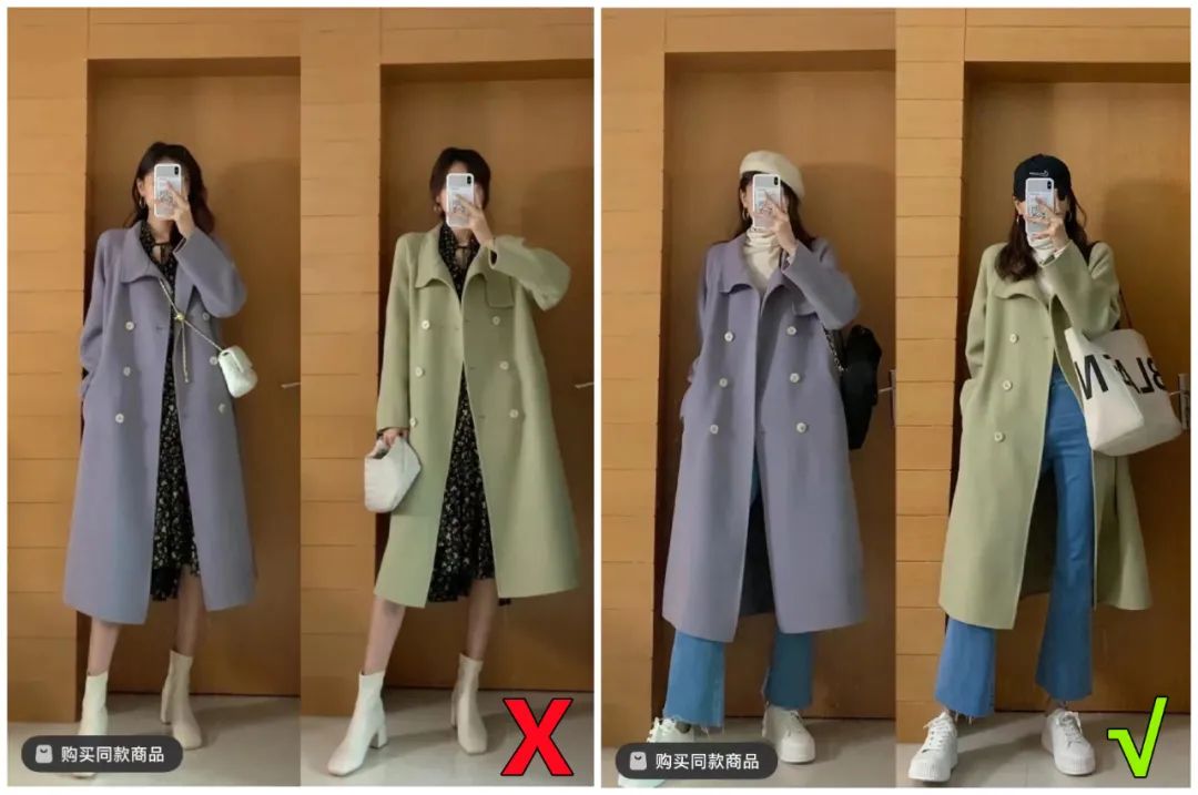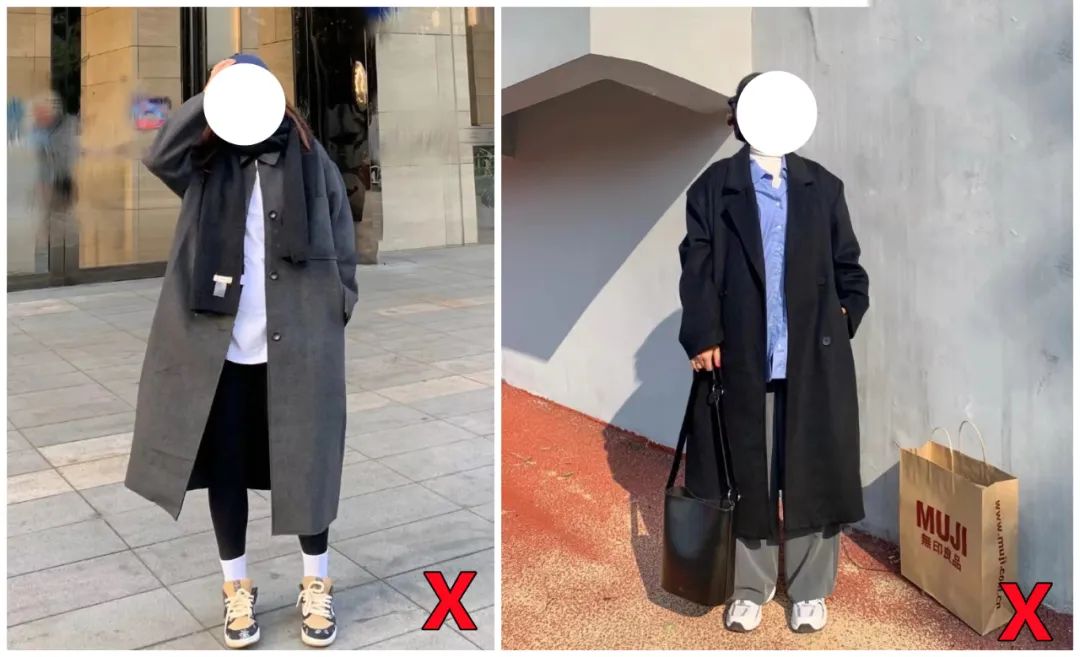 大衣已經足夠臃腫,內搭再繁瑣,寬鬆就容易顯邋遢了。尤其是你們還愛大衣疊毛衣,大衣疊衛衣,點名批評!