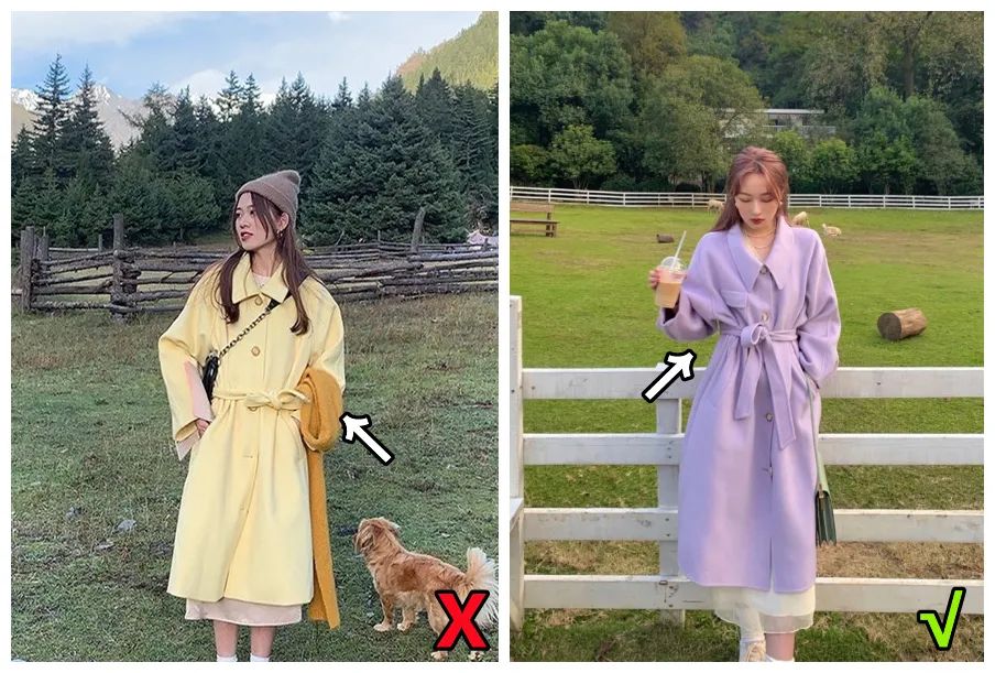 不過買X款大衣要注意,腰帶過低的款容易穿成五五分,胸以下3cm的高腰帶款才是yyds!