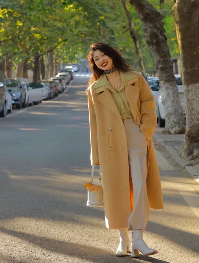 毛呢,雙面呢面料的H型orX型的大衣會更適合普通身材的女生,輕鬆穿出韓系氣氛感。