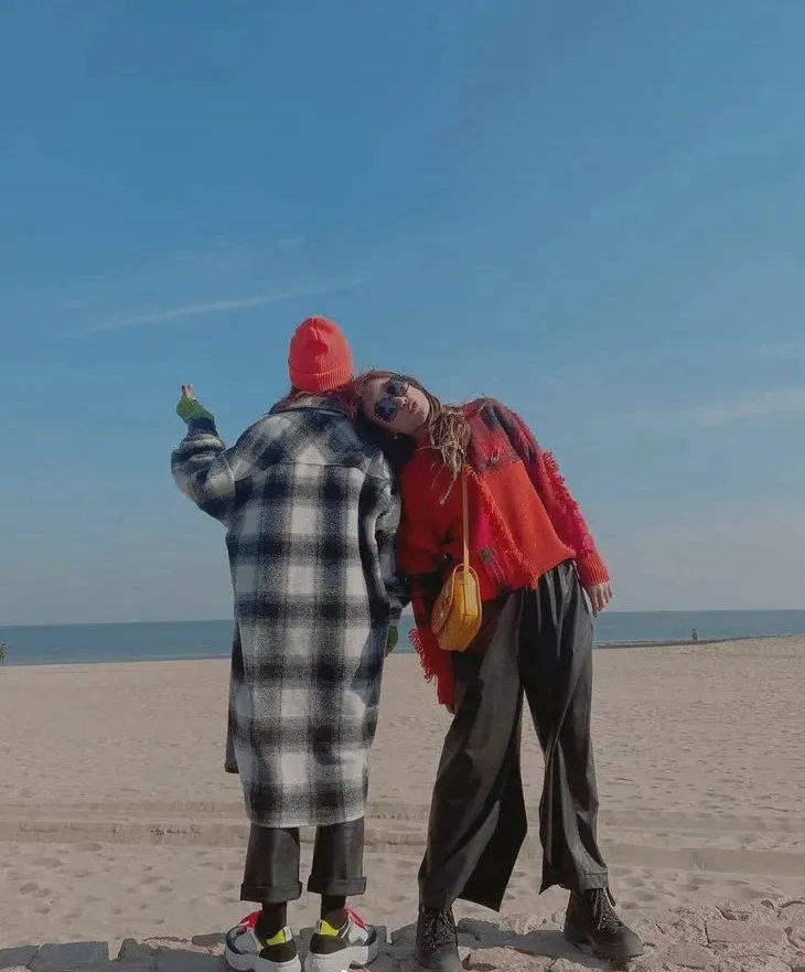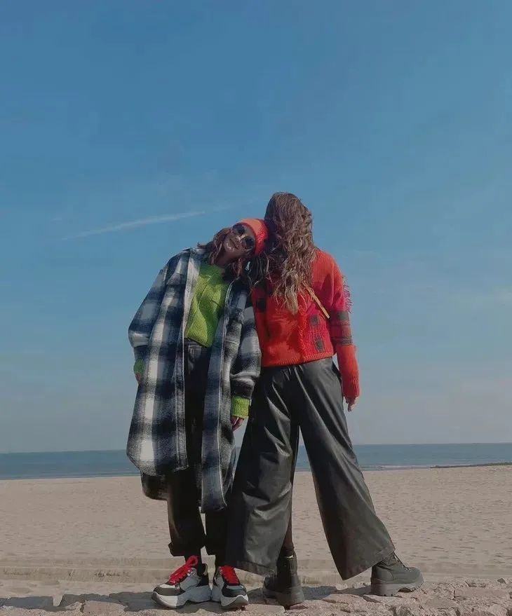 容祖兒、蔡卓妍一起在阿那亞玩耍,皮褲配毛衣,一紅一綠甚是矚目。