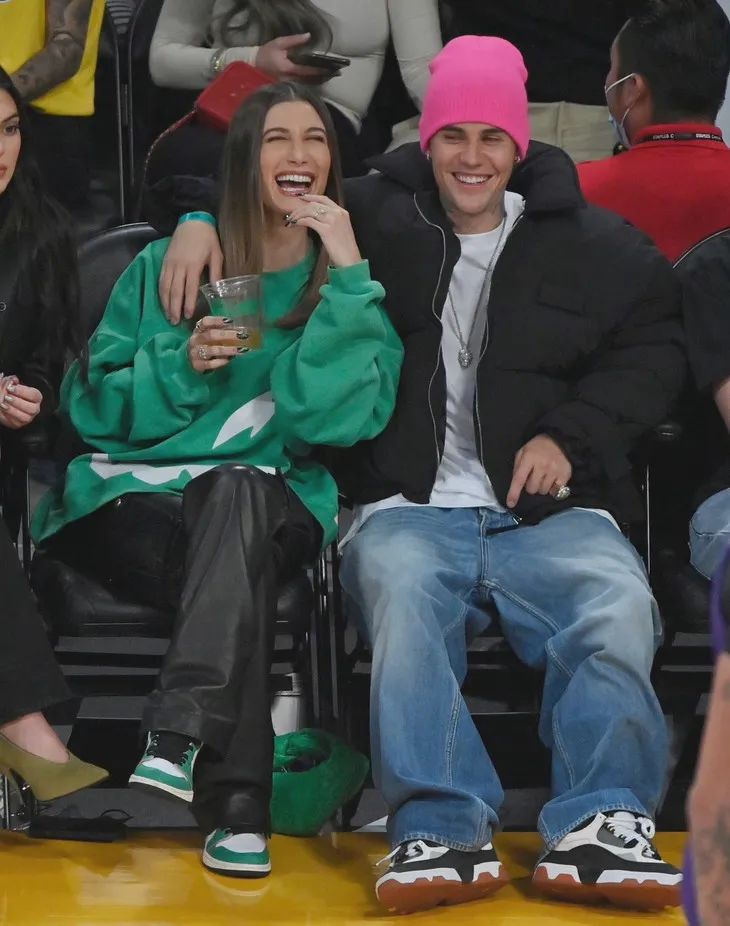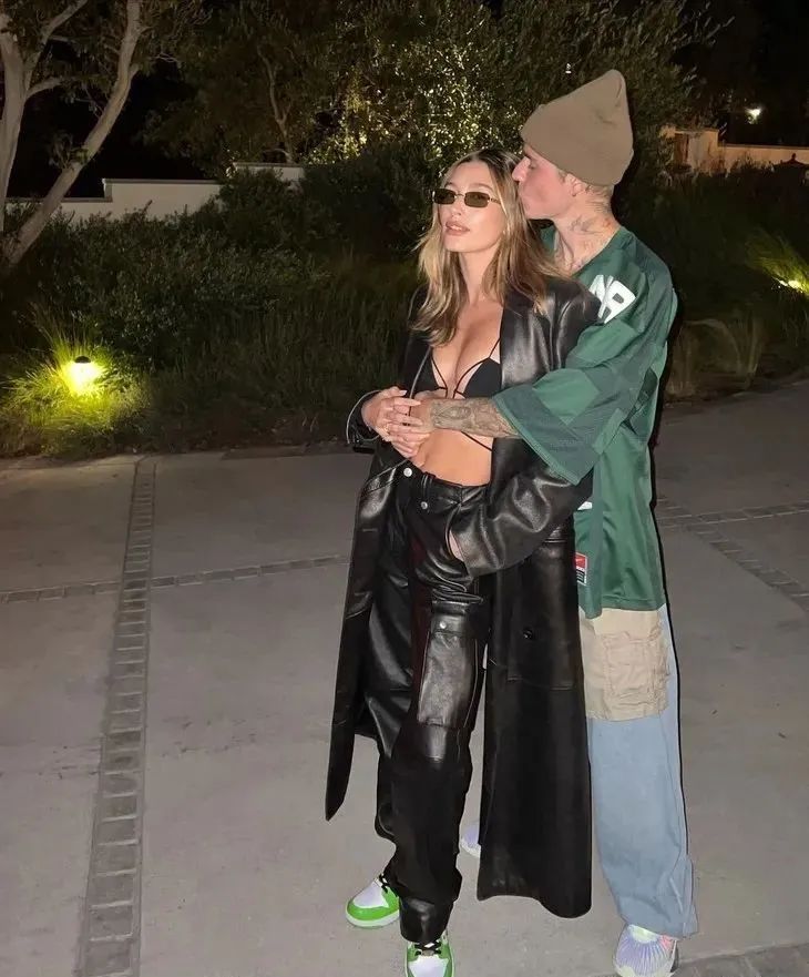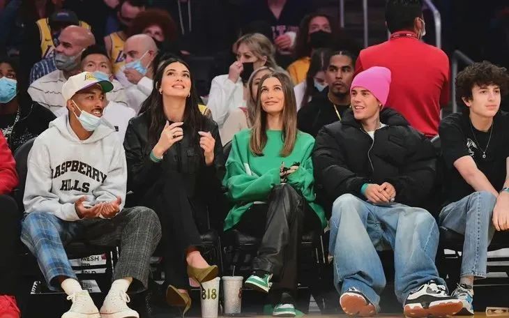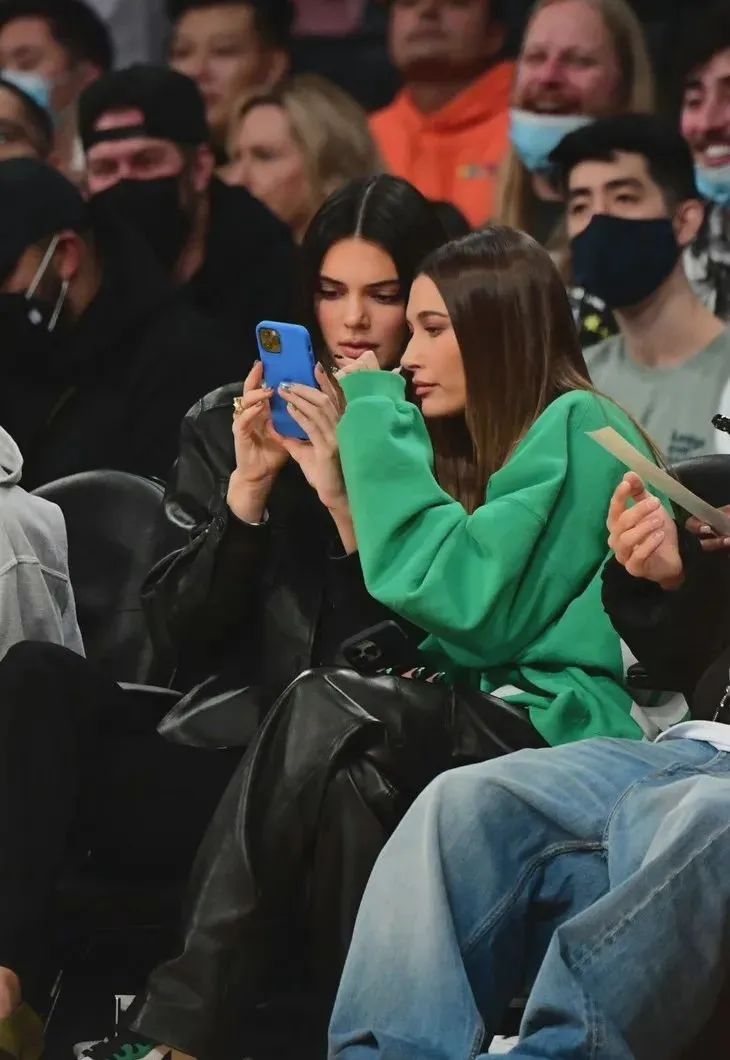 而在太平洋的那頭,Kendall帶著姐妹Hailey和Justin Bieber一起看男朋友打比賽。Kendall一套皮衣造型亮相,颯爽無比;而Hailey則用衛衣配皮褲,輕鬆中帶著幾分酷感。