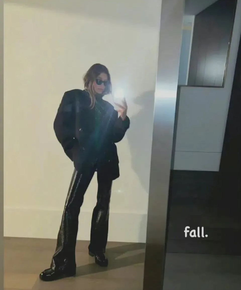 從90年代「穿越」來的辣妹Bella則用皮褲打造復古腔調,無論是在眼鏡、絎縫線棉服加持下打造的」書呆子風「,還是和polo衫組合的乖巧復古風……她的皮褲造型很多都是日常可學的典范。