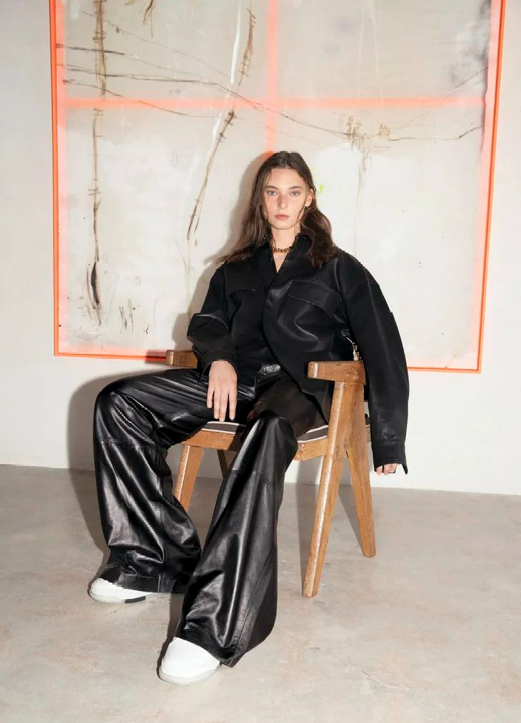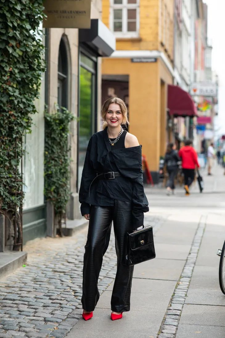 黑色顯腿細且不容易穿出錯想必不用過多強調了,它在搭配上也更能突出皮褲應有的疏離感。