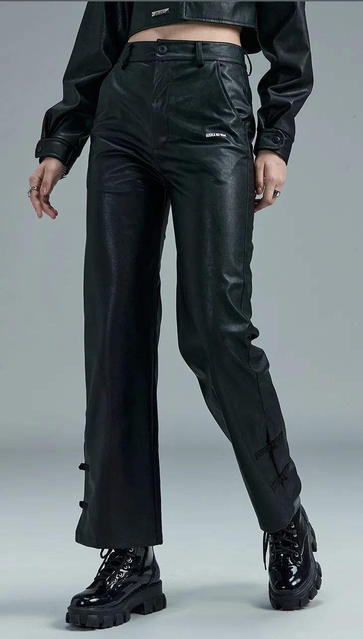 普通身材千萬別覺得自己和皮褲無緣,微微闊腿的版型可以說是能包容所有腿型。胯部比較寬鬆的設計上身完全無束縛,十分款透著強勢的職場氣息,凸顯霸道感;九分款多一點點溫柔。