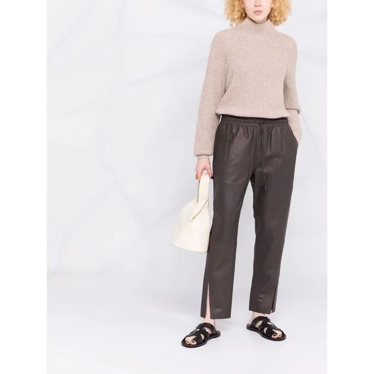 如果已經有一條黑色皮褲了,那麼推薦可以考慮入手棕色、紅棕色、橄欖綠等百搭配色。這些顏色透著一股成熟味道,在皮質的加持下很適合職場演繹。