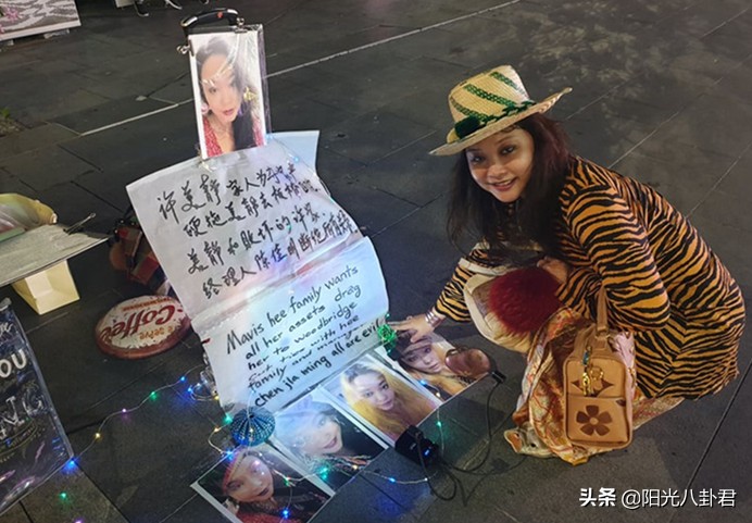 許美靜在街頭一邊賣唱,一邊用文字寫道:「許美靜家人為奪家產,硬拖美靜去精神醫院。美靜和敗壞的許家、經紀人陳佳明斷絕所有關係!」