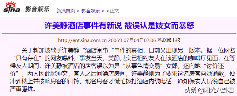 2006年,許美靜傳出「酒店風波」,她闖進一間客房,情緒失控大喊著讓對方給她下跪磕頭道歉。