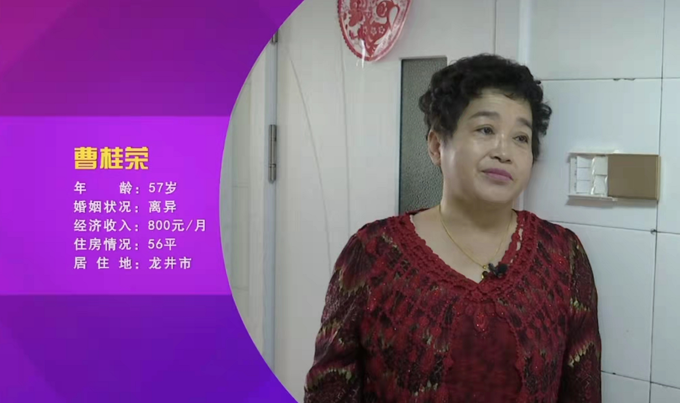 曹大姐57歲,也是離異,退休金800元,住房56平,她說自己就想找個不抽煙不酗酒,幹乾淨淨能養家糊口的男人就行。