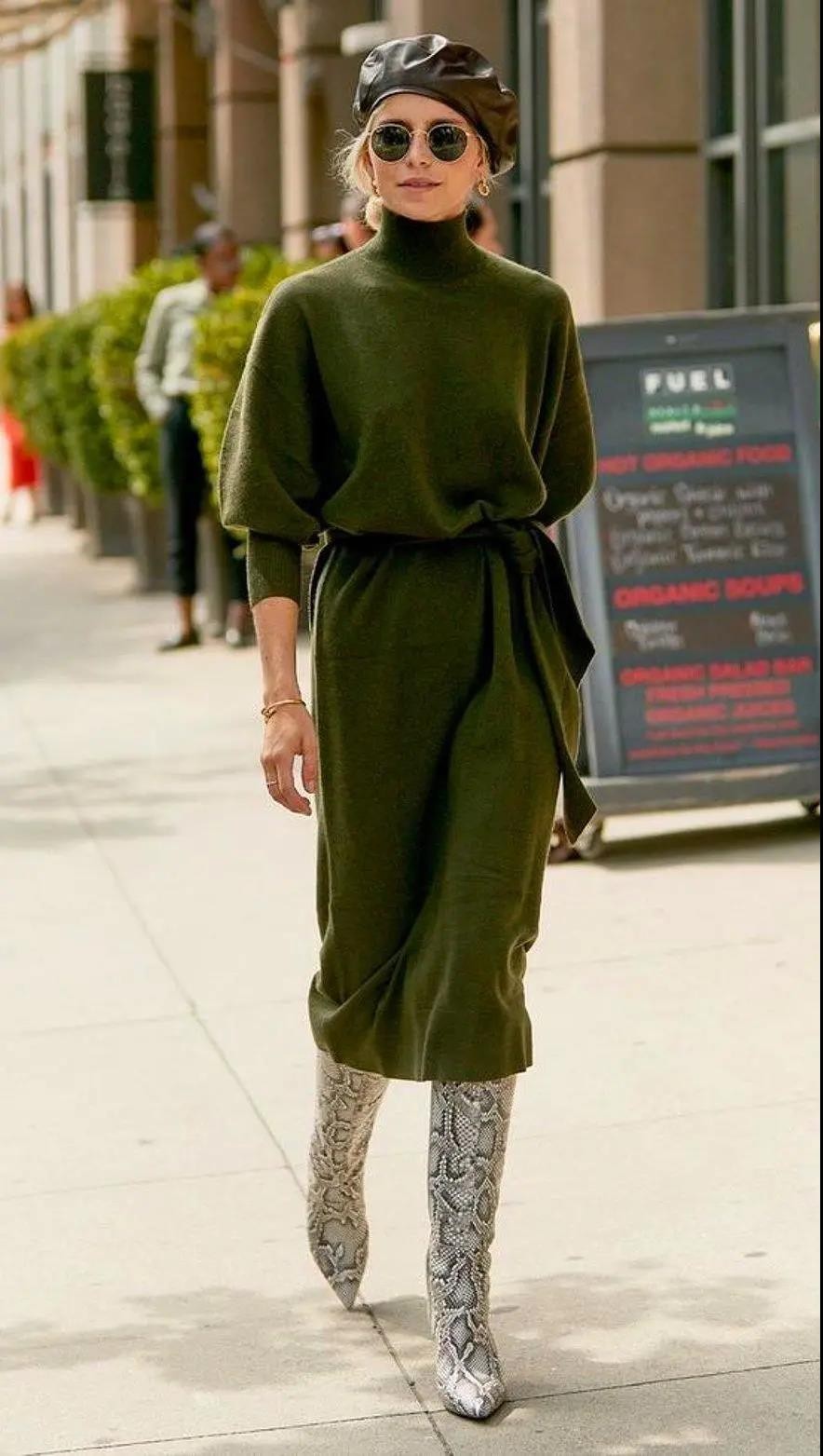 風格枯燥的搭配方式總是不盡人意,但是很多小白隻擅長單穿針織連衣裙,如果想要打造的時髦有個性,就可以在搭配中來選擇其他單品,借助其他單品的時尚優勢,呈現最獨特的時尚風格,例如說搭配蛇皮元素的靴子,或者是搭配一款黑色貝雷帽,這種風格會更顯品味。