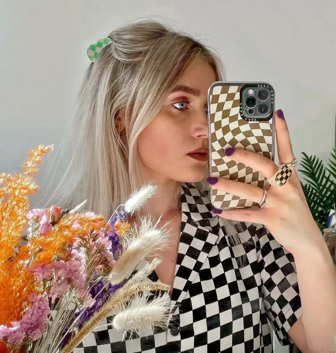 不過要說棋盤格紋最得意的配飾,我說是手機殼大家沒有抗告吧!