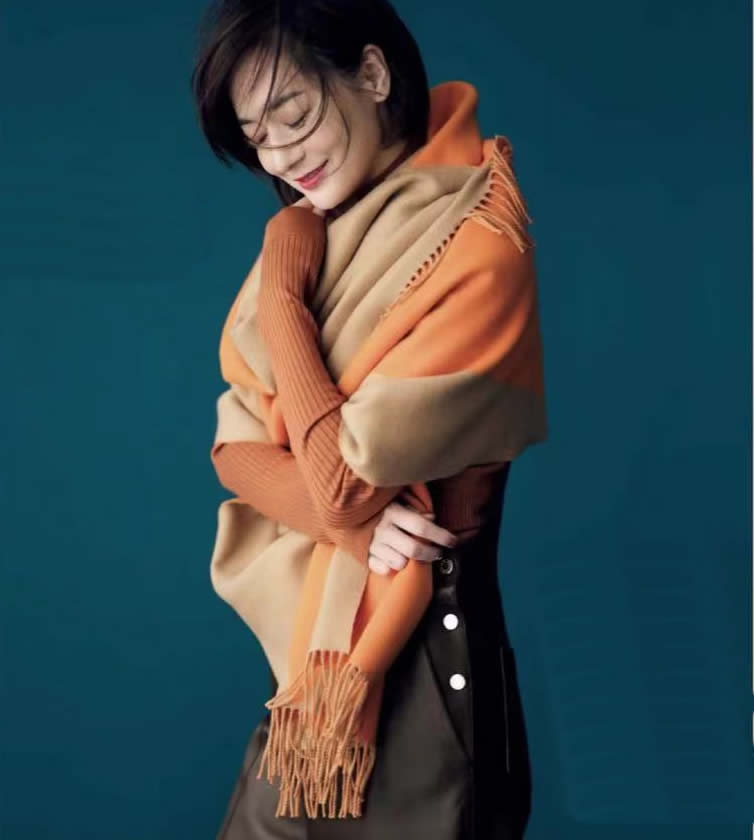 橘米配色的大圍巾,非常有特色。優雅大氣,還不乏朝氣活力。難得的明亮橘色又是拯救膚色的一把好看。細膩的羊絨,是溫暖、更是精緻。
