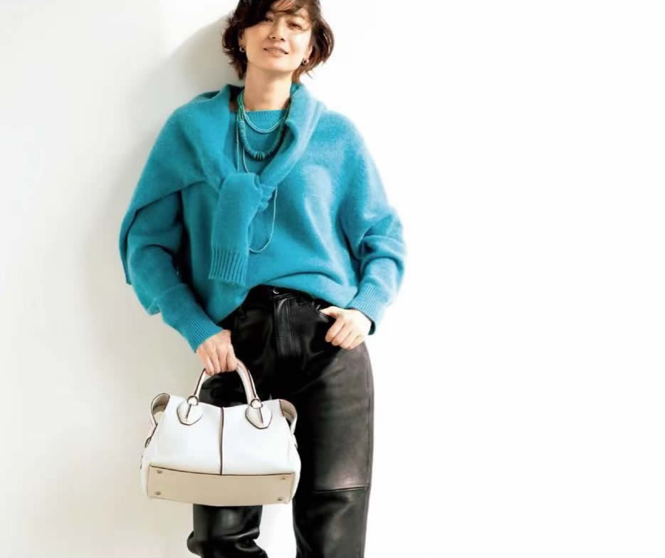 鮮艷色毛衣當小物疊穿,是日系風中常見的點綴手法。至少有3個作用值得借鏡:一,打造慵懶隨意的休閒優雅風格;二,撞色亮點,收獲驚艷;三,拯救基礎色。
